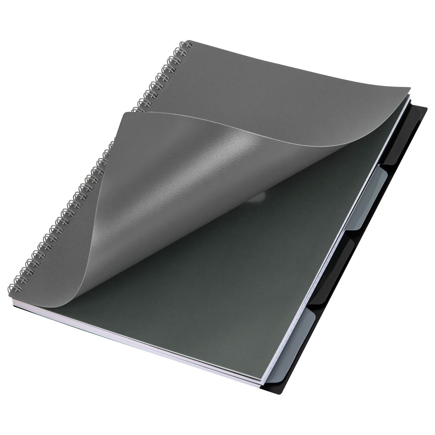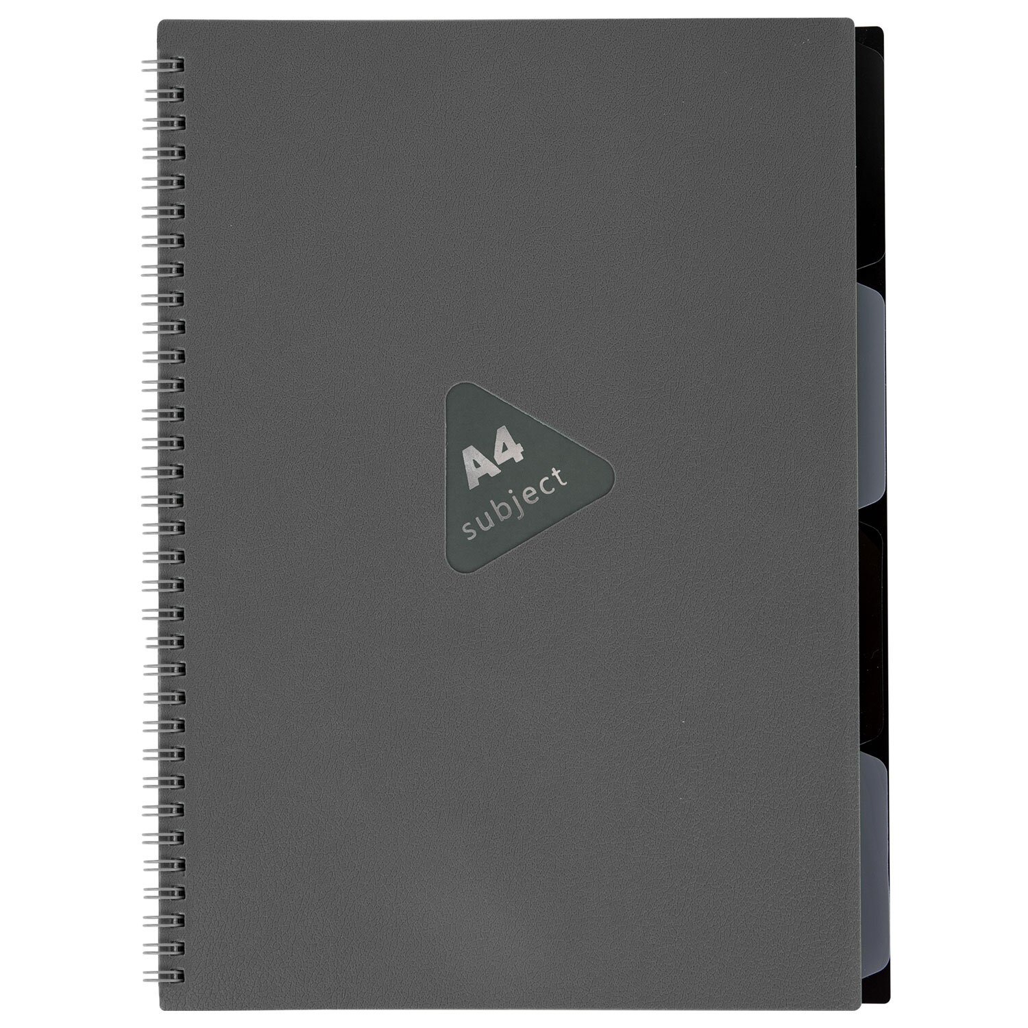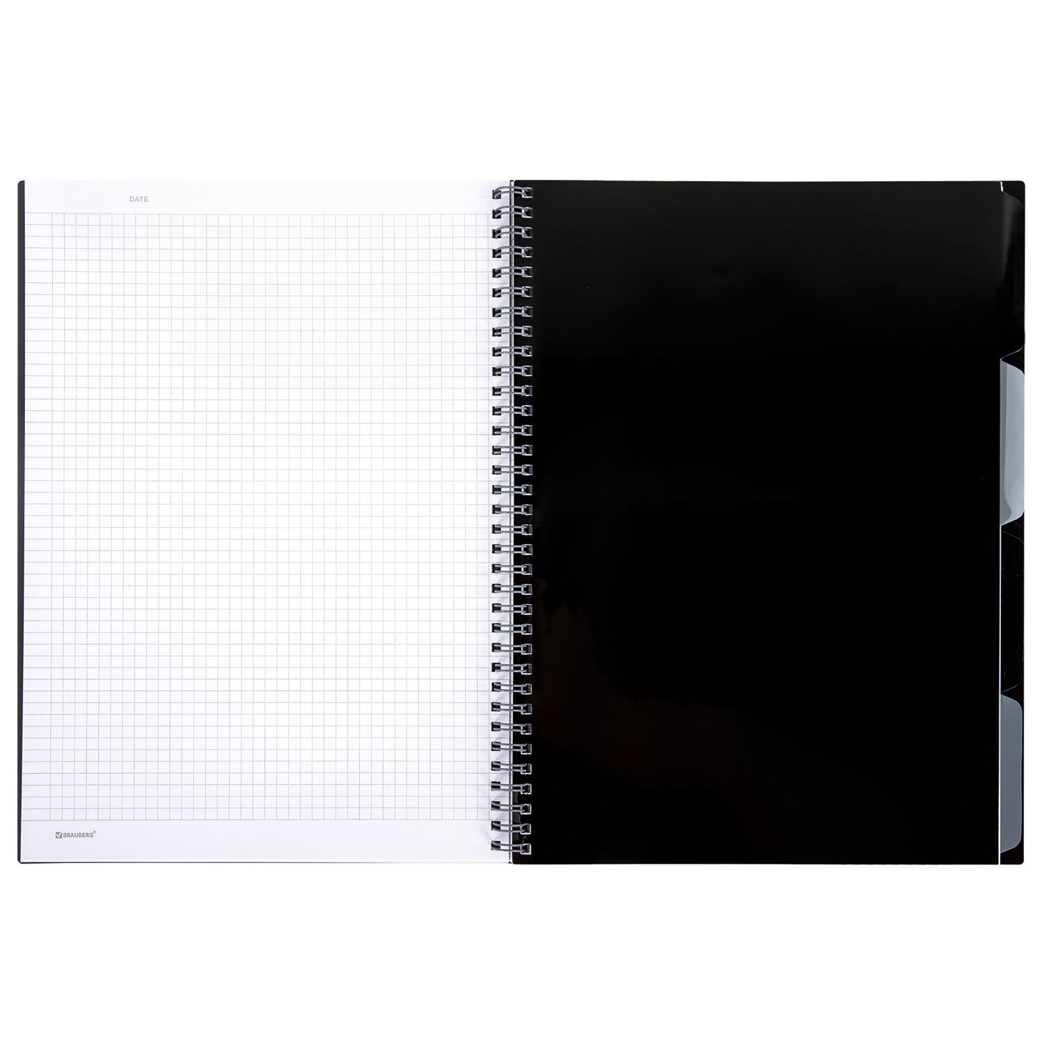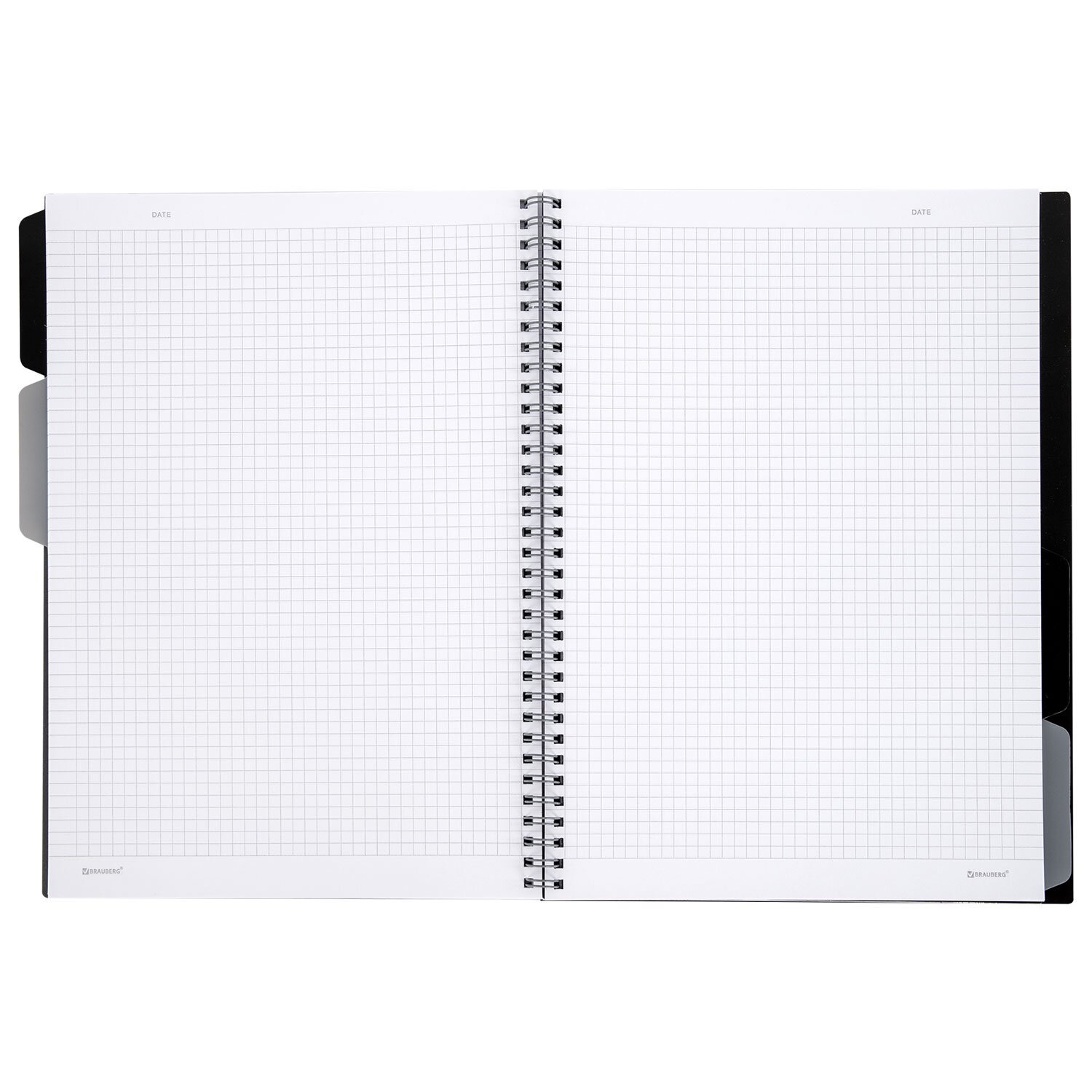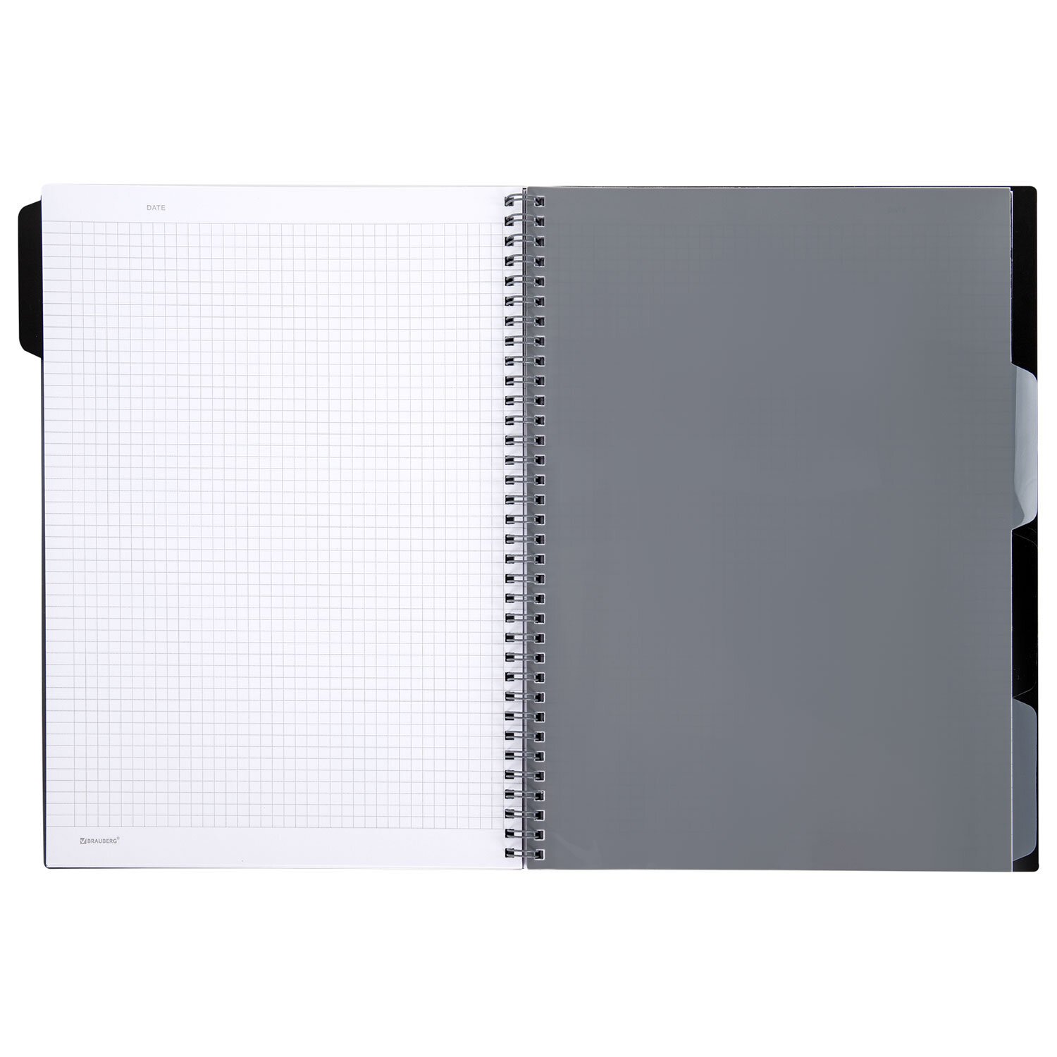 Тетрадь обложка пластик, А4 80л. гребень, 4 съемных разделителя, клетка, BRAUBERG, серый, 405365