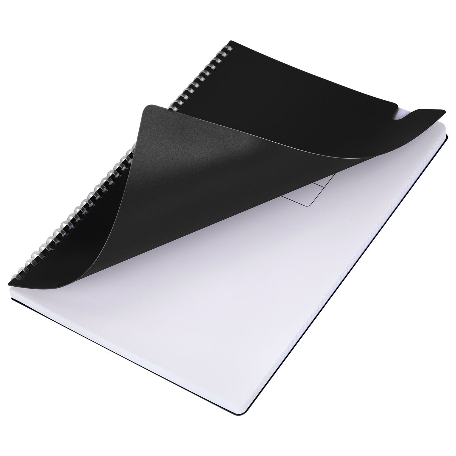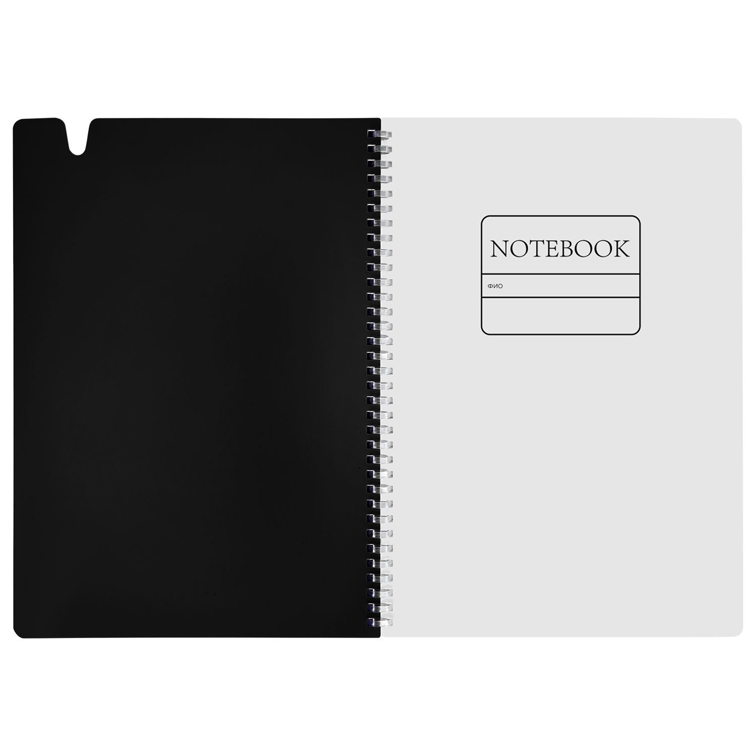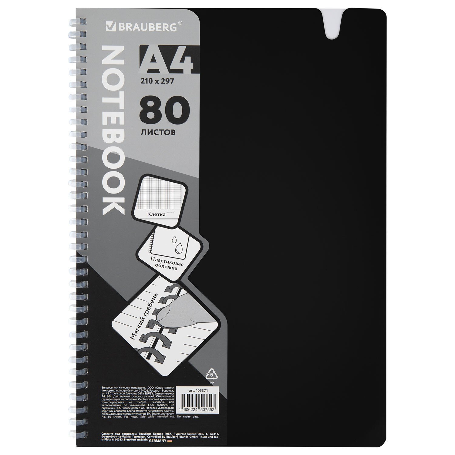 Тетрадь обложка пластик, А4 80л. гребень мягкий, вырубка для ручки, клетка, BRAUBERG, черный, 405371