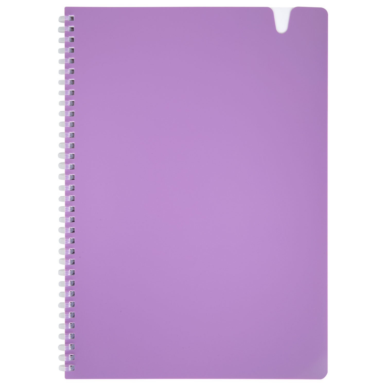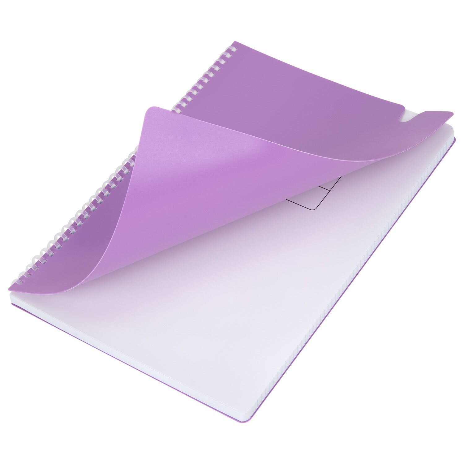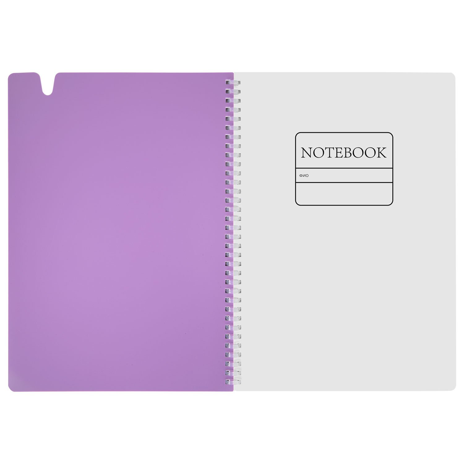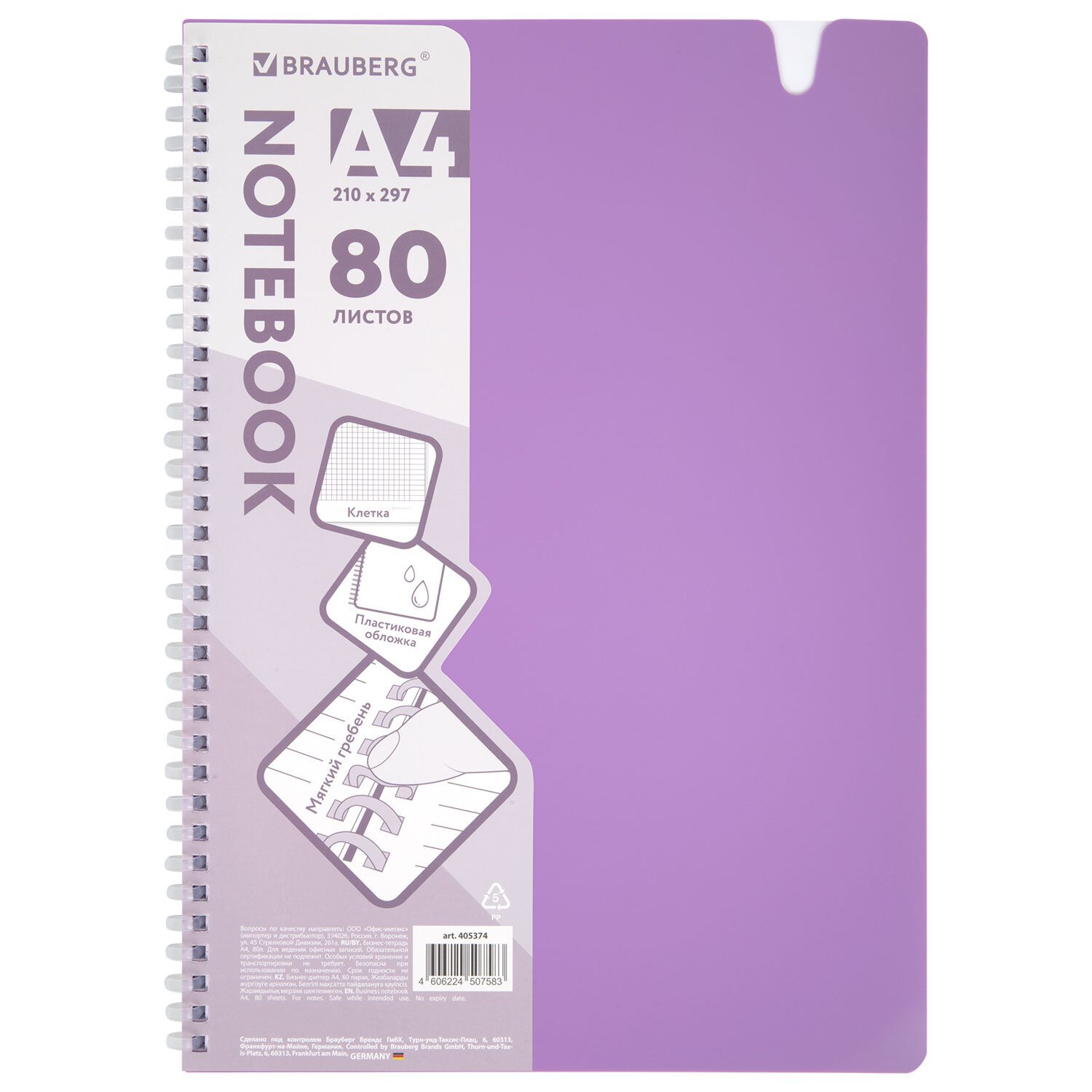 Тетрадь обложка пластик, А4 80л. гребень мягкий, вырубка для ручки, клетка, BRAUBERG, сиреневый, 405374