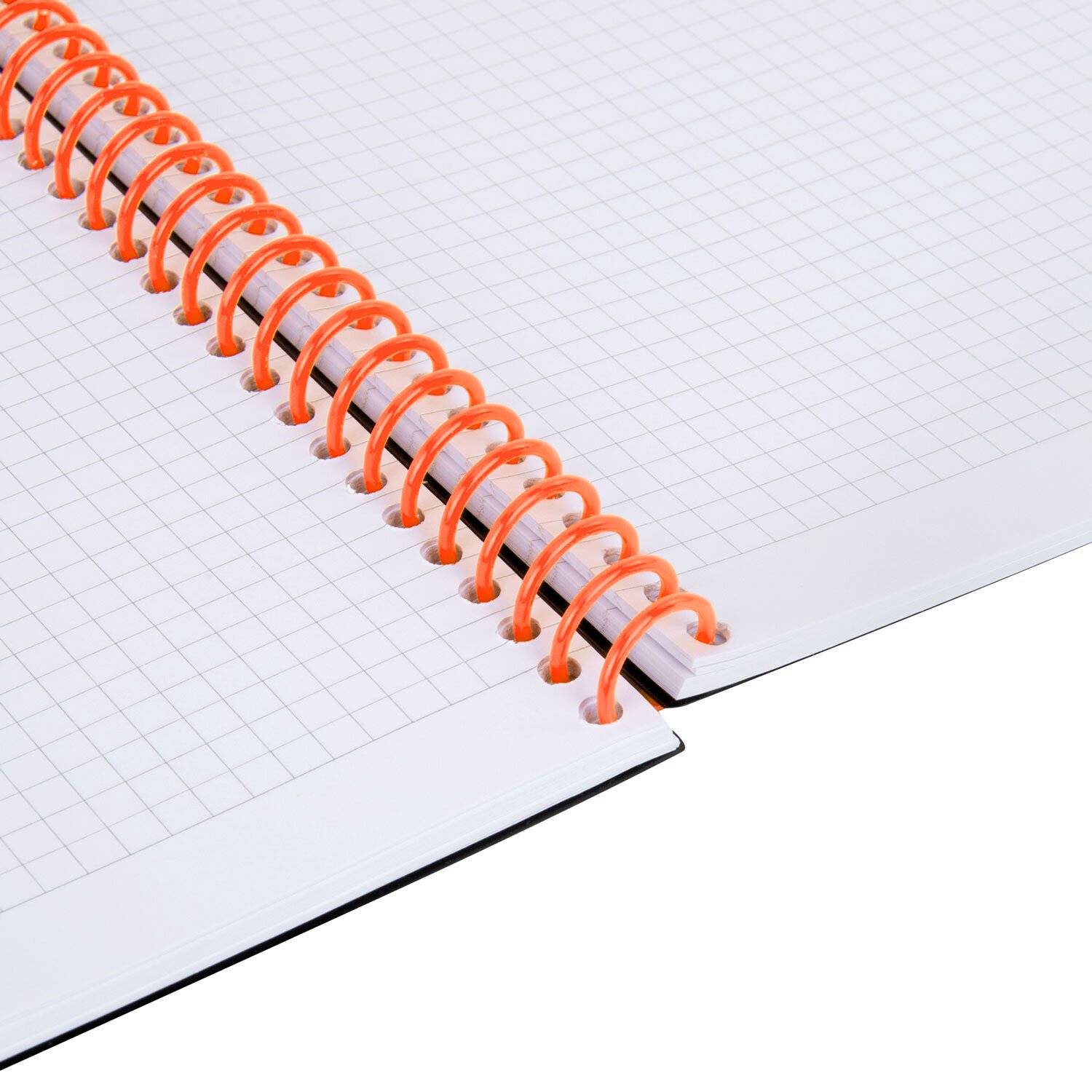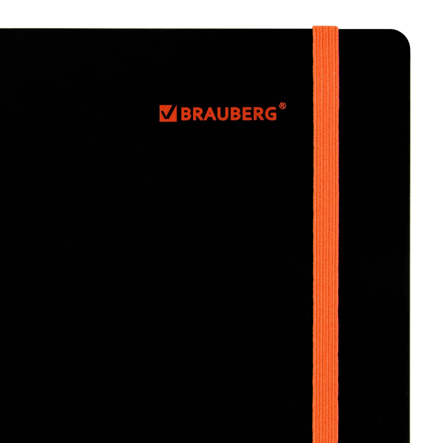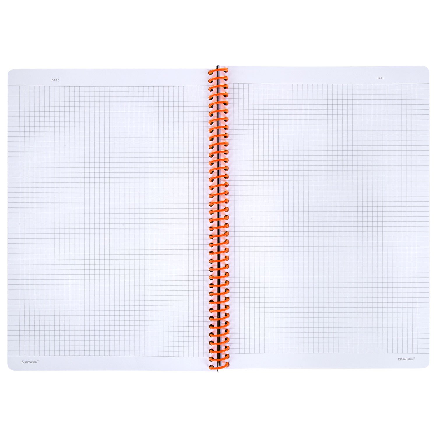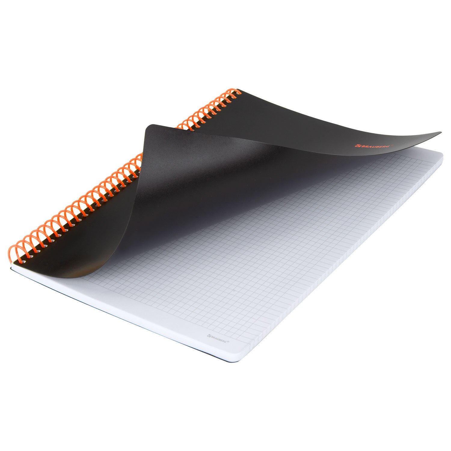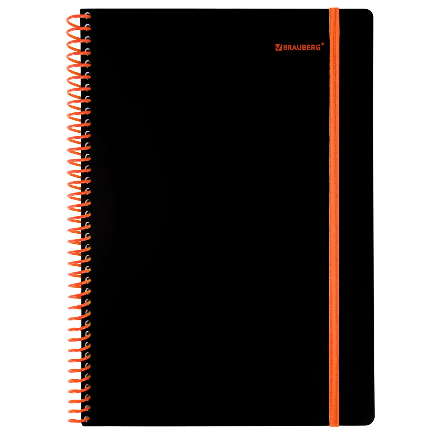 Тетрадь обложка пластик, А4 80л. спираль пластик, резинка, клетка, BRAUBERG, черный/оранжевый, 405382