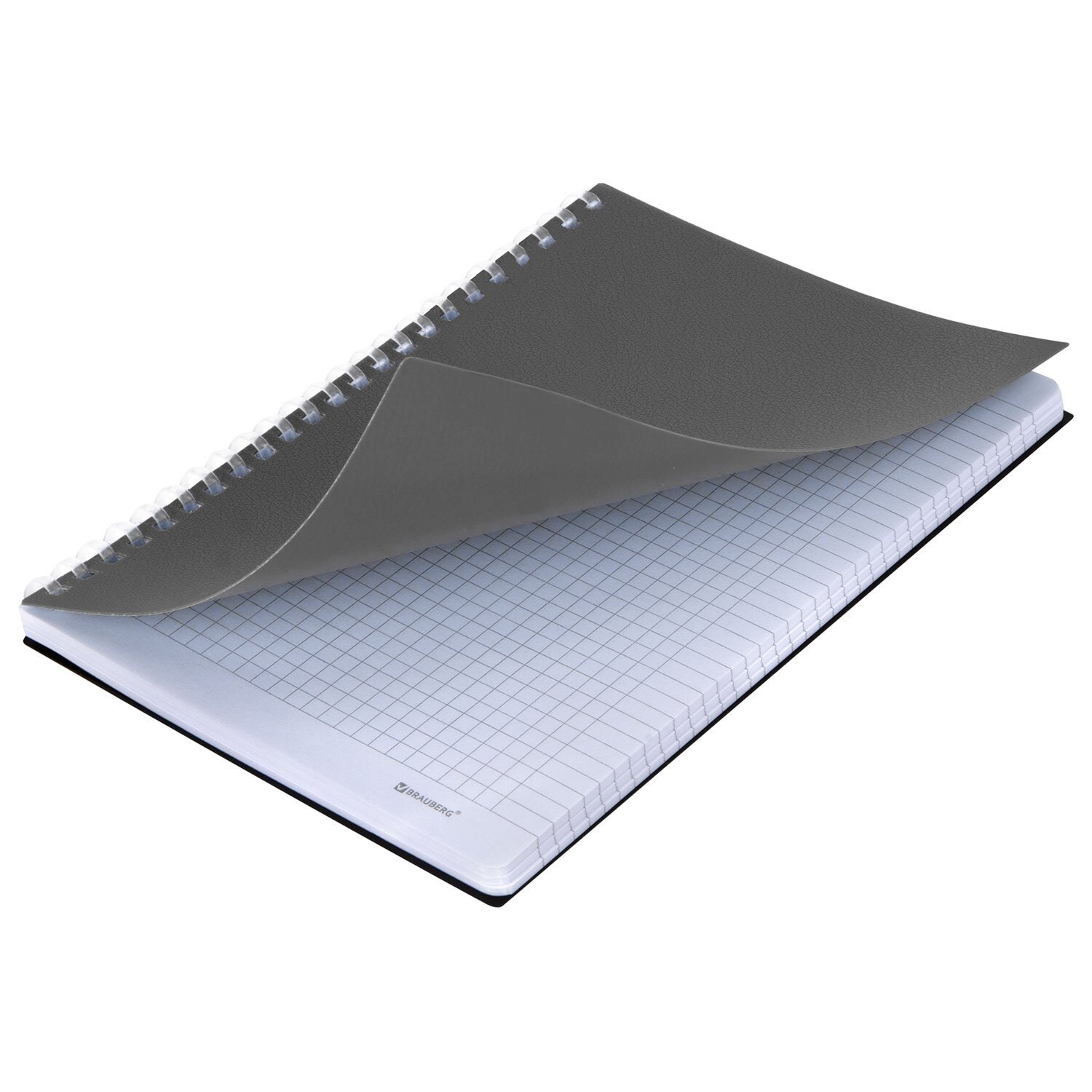 Тетрадь обложка пластик, А5 80л. гребень мягкий (силиконовый), клетка, BRAUBERG, серый, 405361