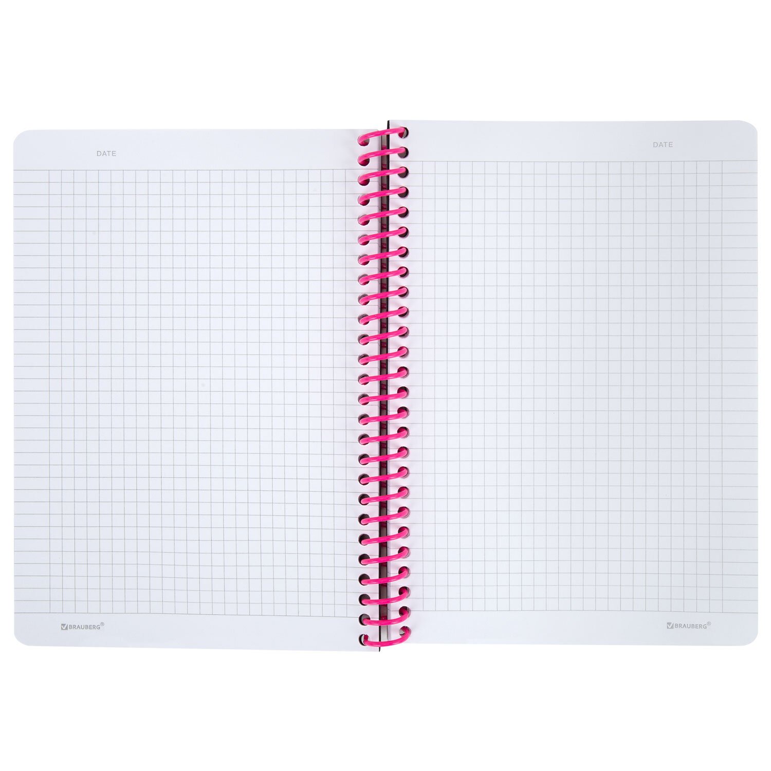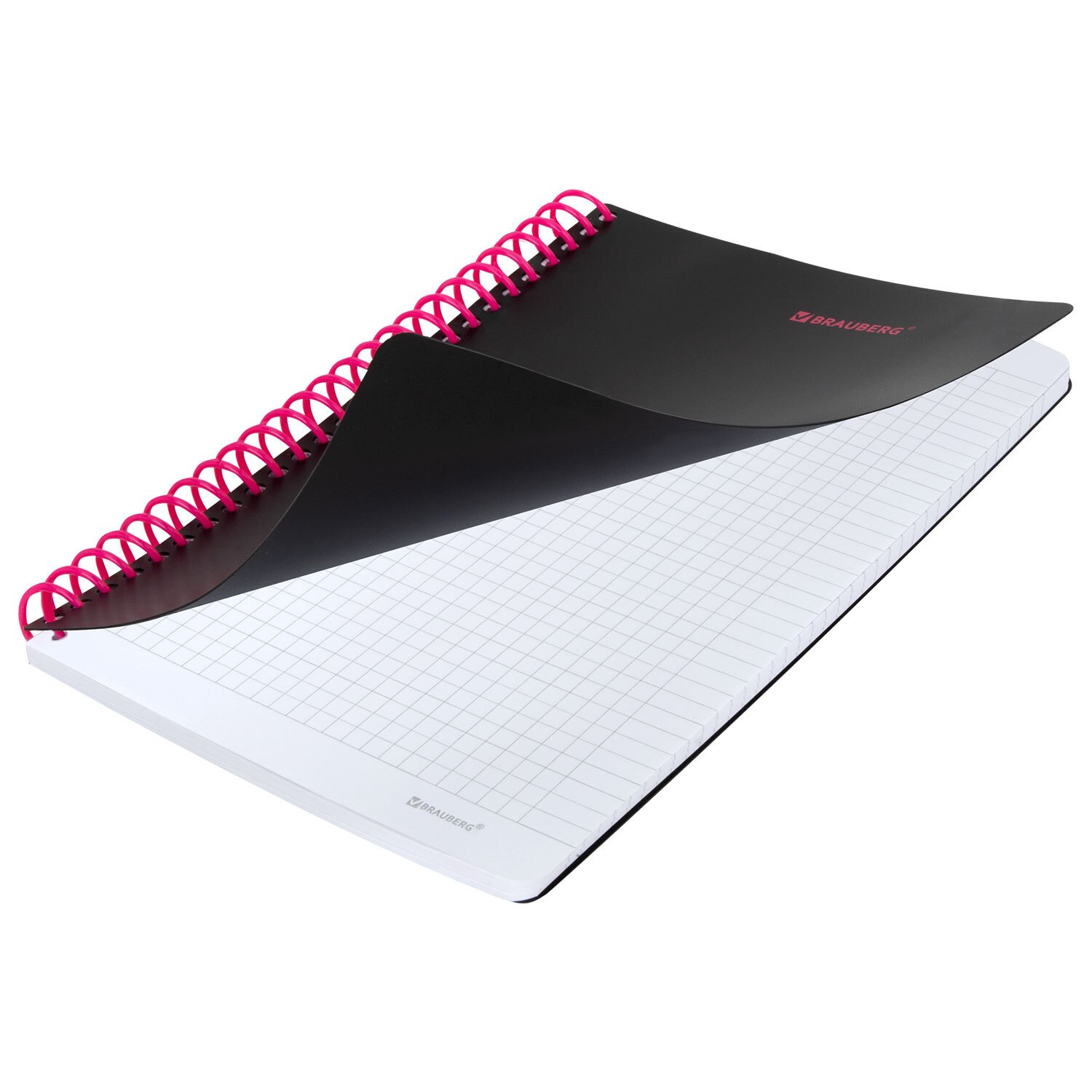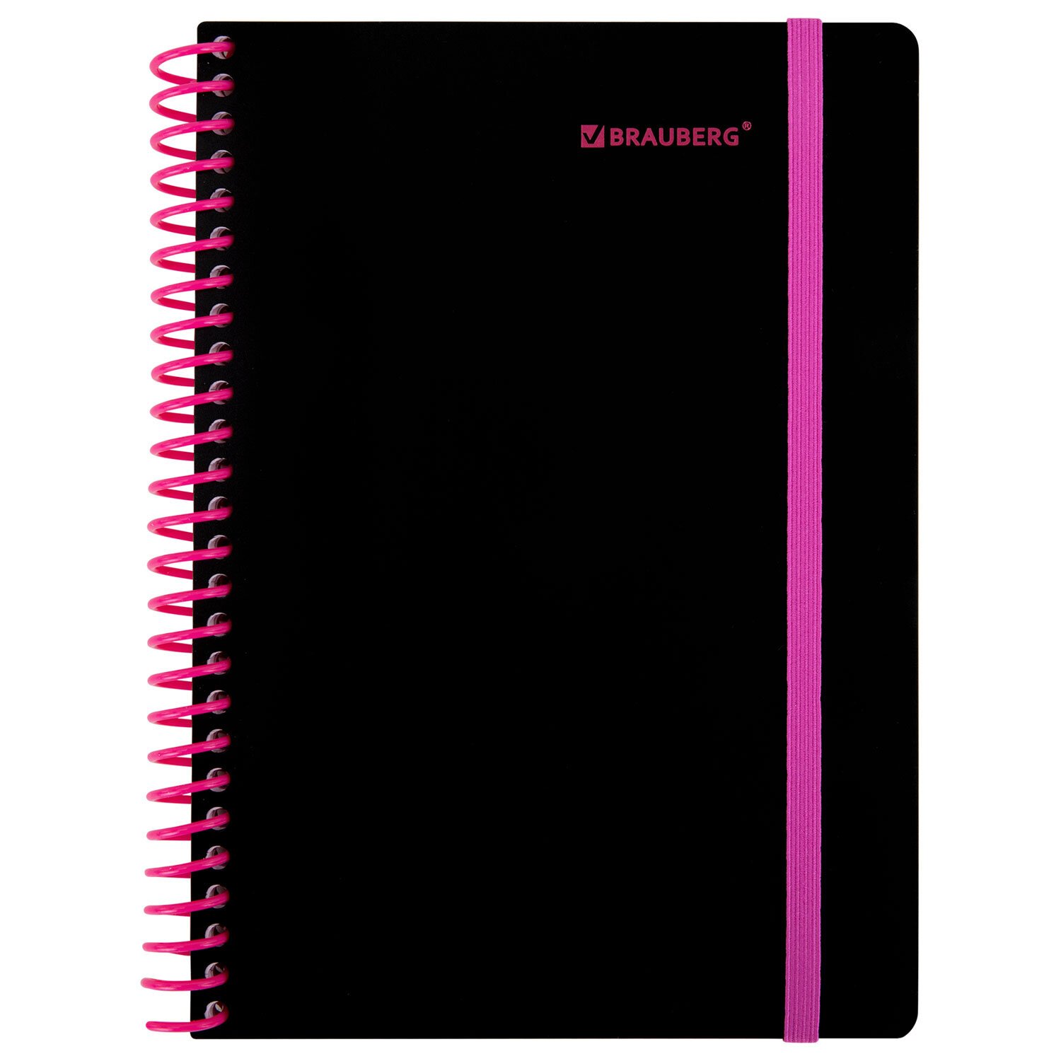 Тетрадь обложка пластик, А5 80л. спираль пластик, резинка, клетка, BRAUBERG, черный/розовый, 405384