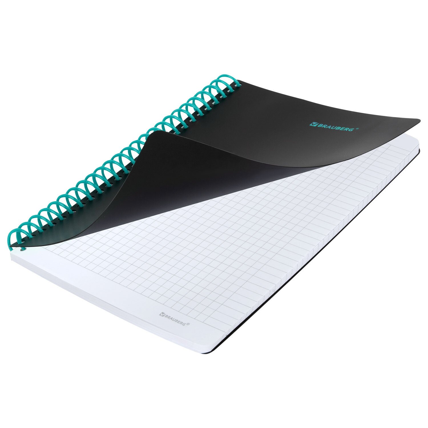Тетрадь обложка пластик, А5 80л. спираль пластик, резинка, клетка, BRAUBERG, черный/зеленый, 405387
