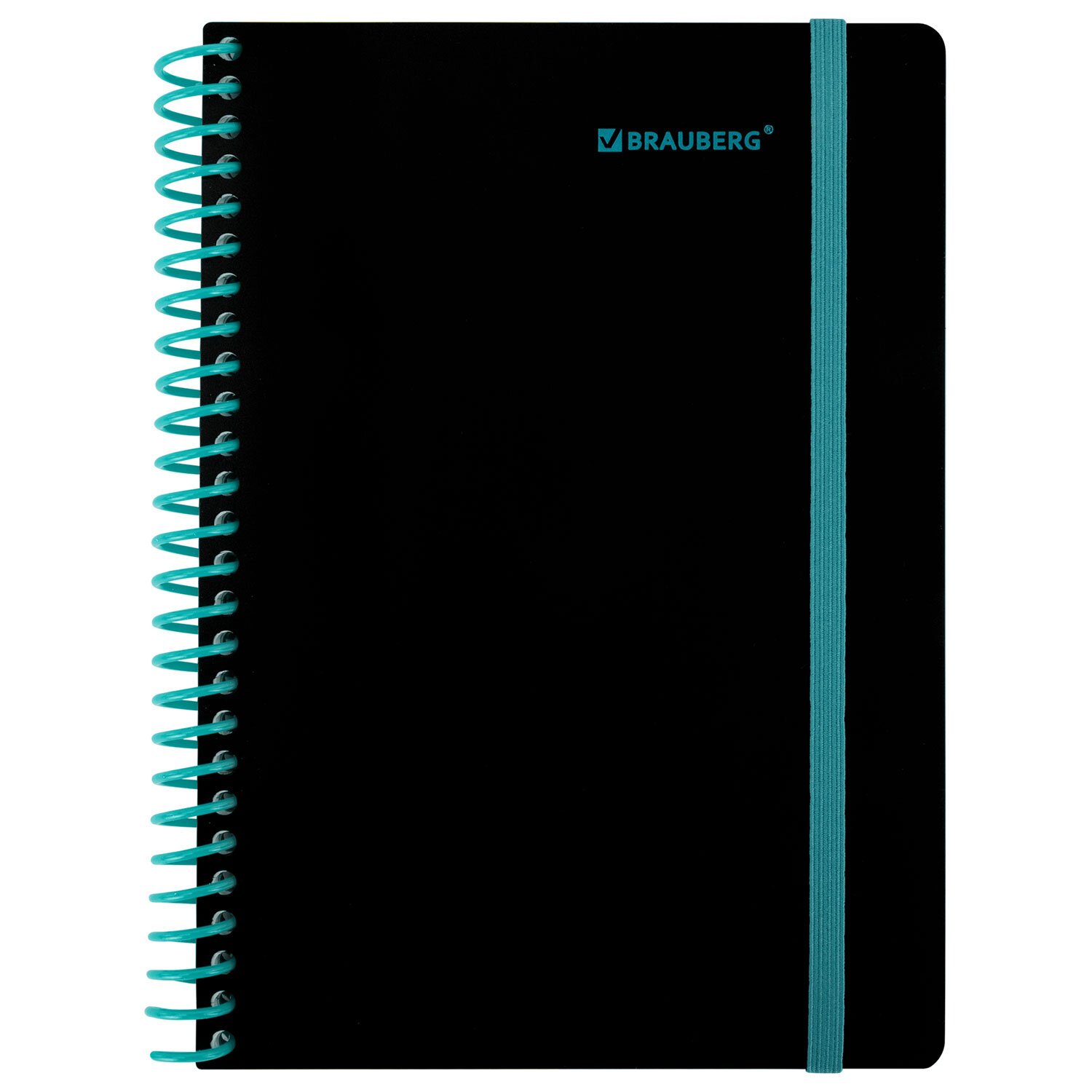 Тетрадь обложка пластик, А5 80л. спираль пластик, резинка, клетка, BRAUBERG, черный/синий, 405385