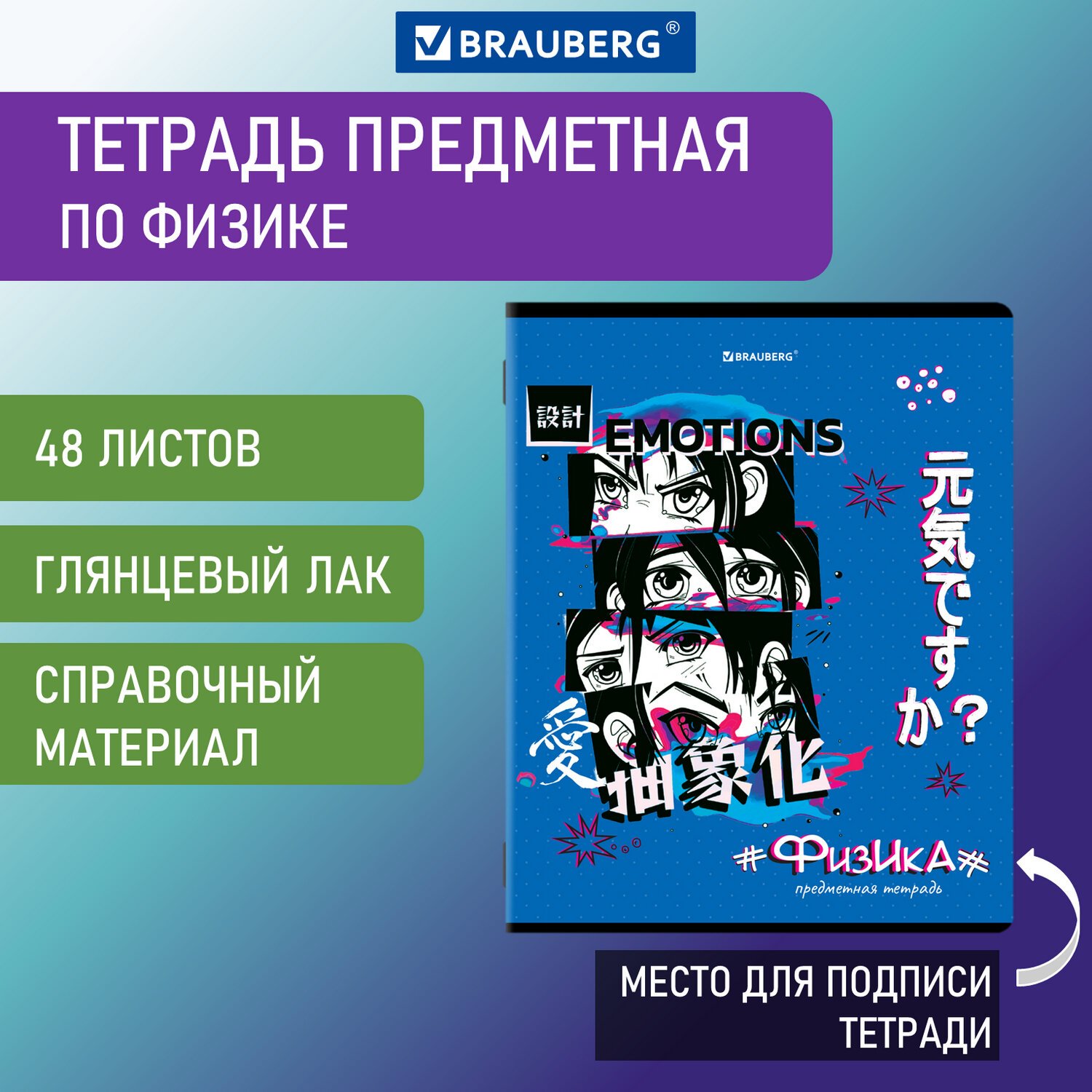 Тетрадь предметная "ANIME" 48 л., глянцевый УФ-лак, ФИЗИКА, клетка, BRAUBERG, 404542