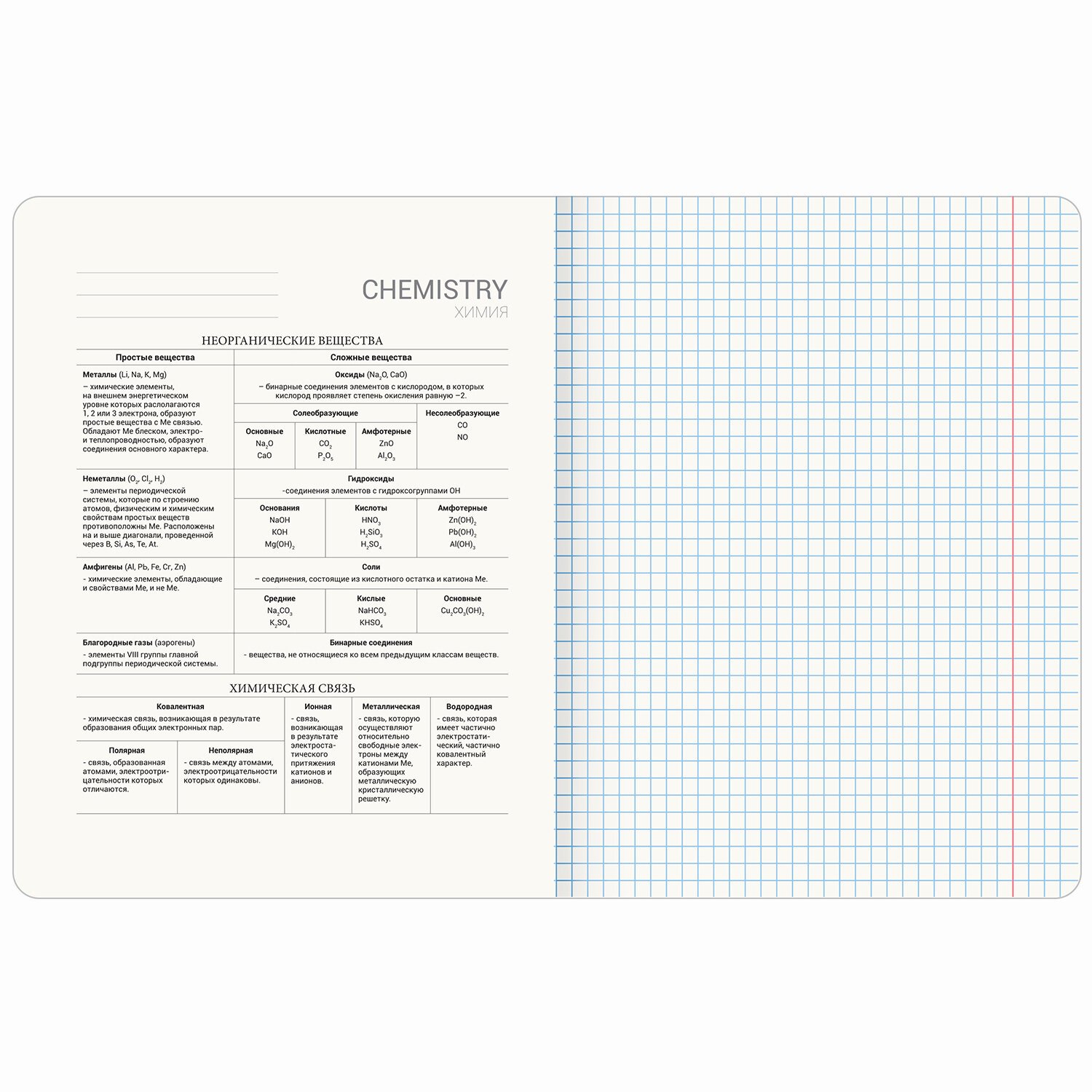 Тетрадь 48 листов, формат А5 (165х202 мм). Изготовлена из высококачественной офсетной бумаги плотностью 60 г/м2, белизной 100%. Листы соединены скобами. Линовка блока - в клетку, поля красные. Обложка выполнена из мелованного картона плотностью 190 г/м2. Спецэффект на обложке - матовая ламинация. В справочном материале собраны основные подсказки по школьному предмету для учащихся.