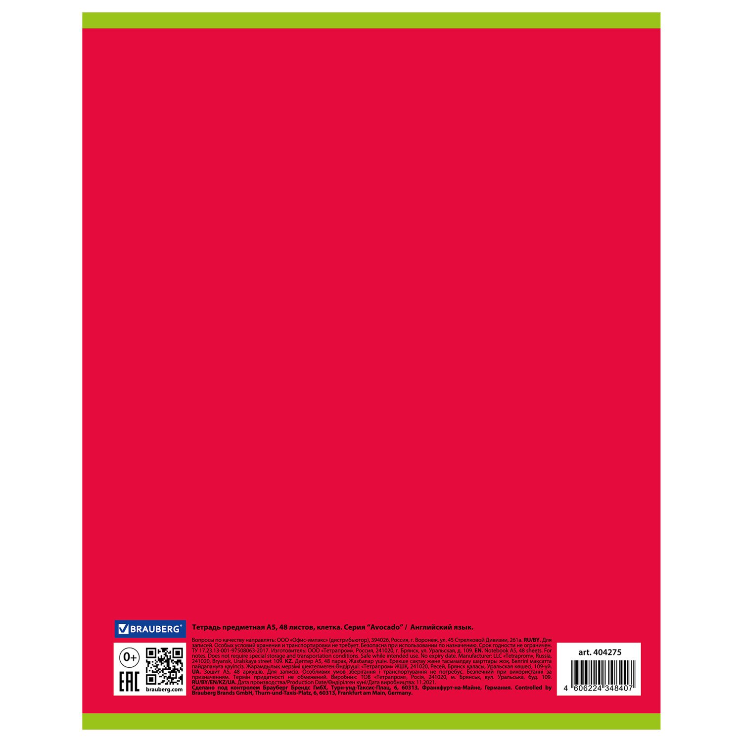 Тетрадь предметная "AVOCADO" 48 л., глянцевый лак, АНГЛИЙСКИЙ ЯЗЫК, клетка, BRAUBERG, 404275