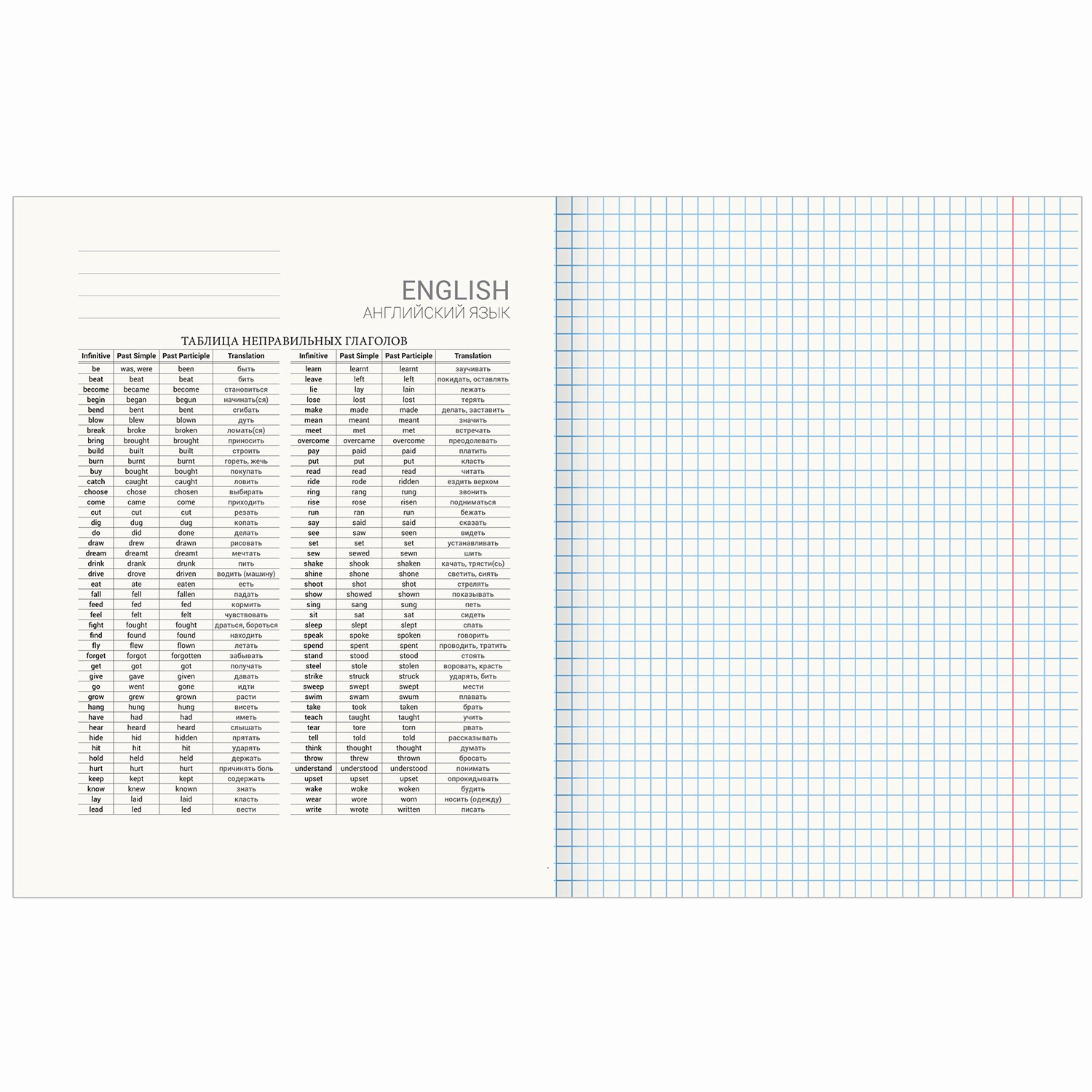 Тетрадь "Английский язык" формата А5 (165х202 мм) содержит 48 листов, изготовленных из высококачественной офсетной бумаги плотностью 60 г/м2 и белизной 100%. Листы соединены скобами. Линовка блока - в клетку, поля красные. Обложка выполнена из мелованного картона плотностью 190 г/м2 в тематике соответствующего предмета. Благодаря глянцевому лаку краски на изображении становятся более яркими и насыщенными. В справочном материале собраны основные подсказки по школьному предмету для учащихся.