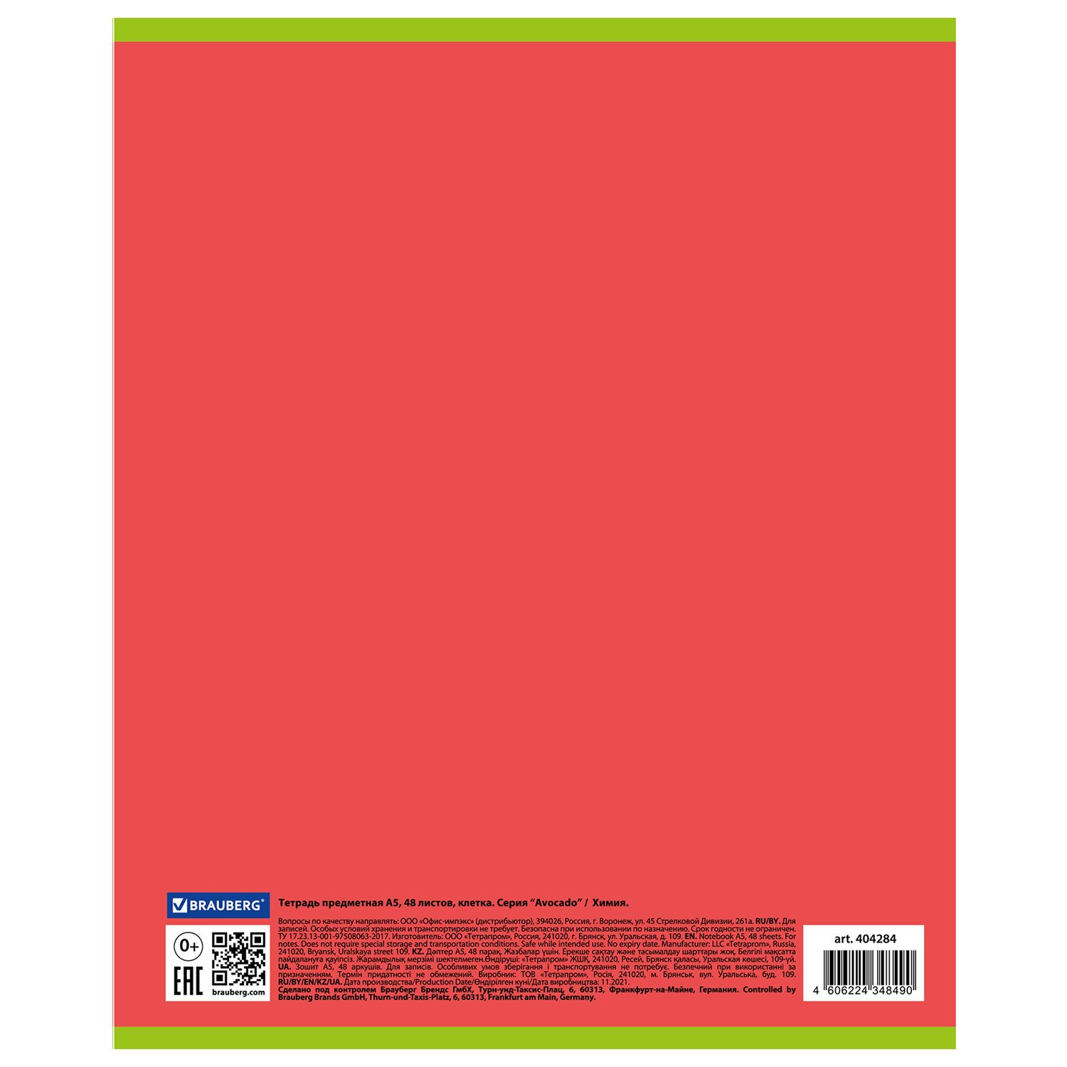 Тетрадь предметная "AVOCADO" 48 л., глянцевый лак, ХИМИЯ, клетка, BRAUBERG, 404284
