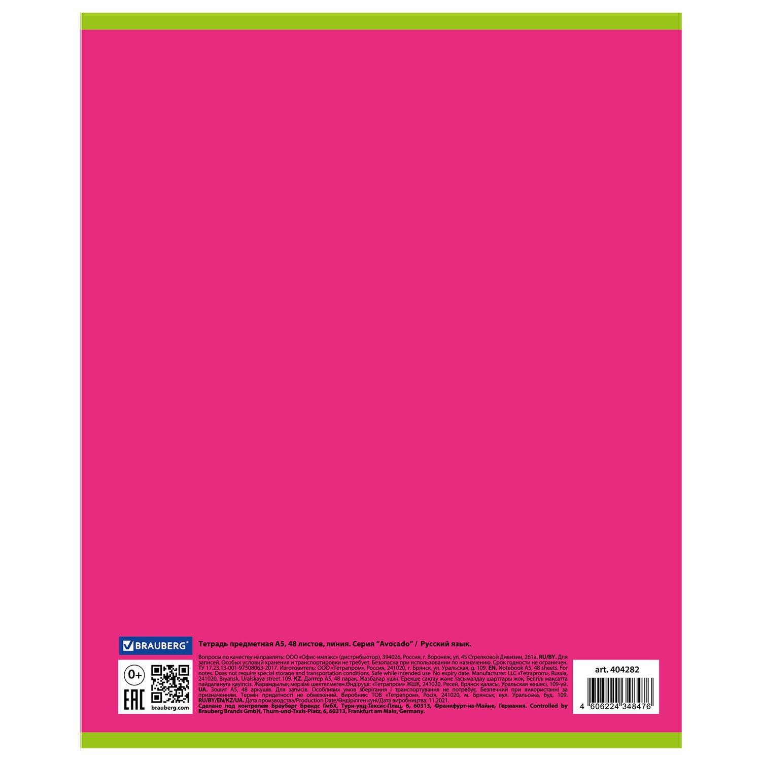 Тетрадь предметная "AVOCADO" 48 л., глянцевый лак, РУССКИЙ ЯЗЫК, линия, подсказ, BRAUBERG, 404282