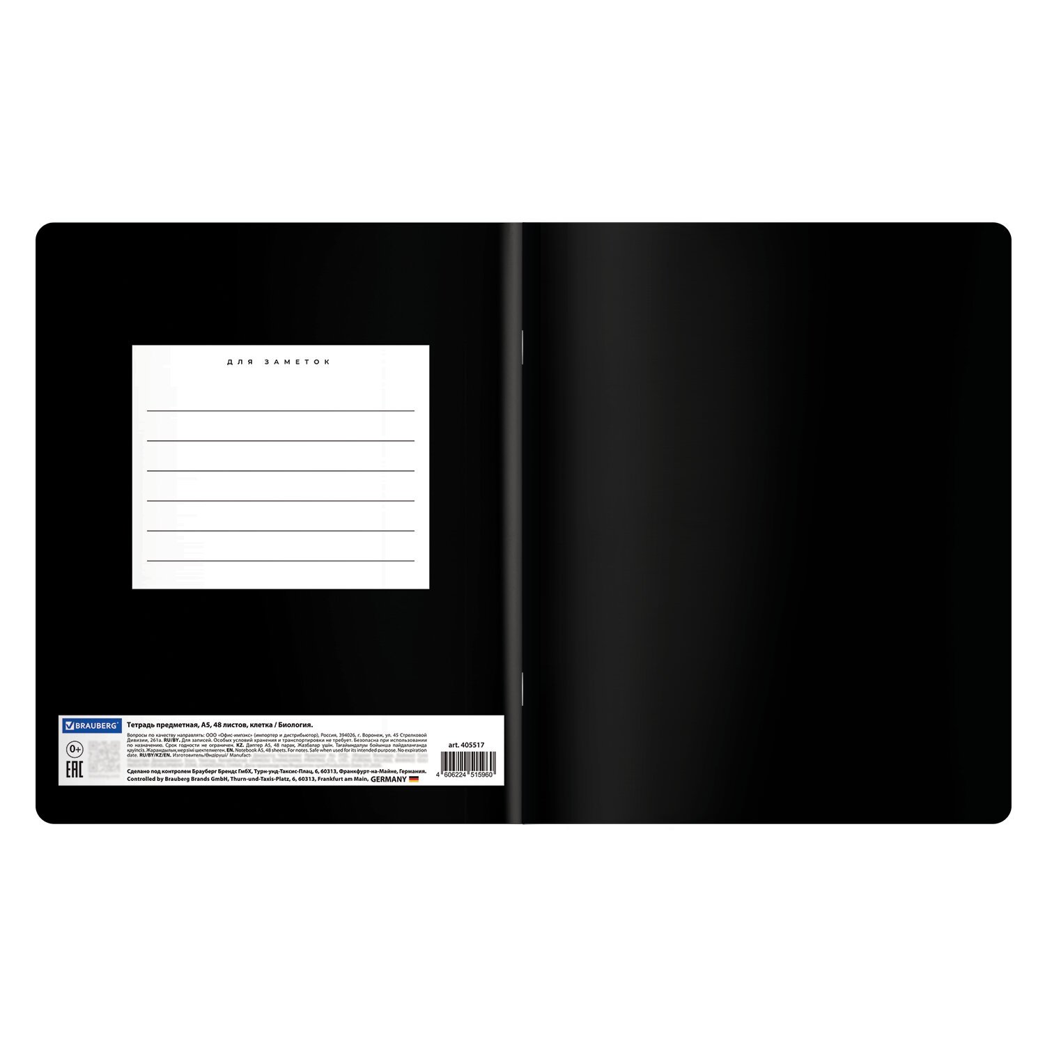 Тетрадь предметная BLACK MODE 48л, пластиковая обложка, БИОЛОГИЯ, клетка, подсказ, BRAUBERG, 405517
