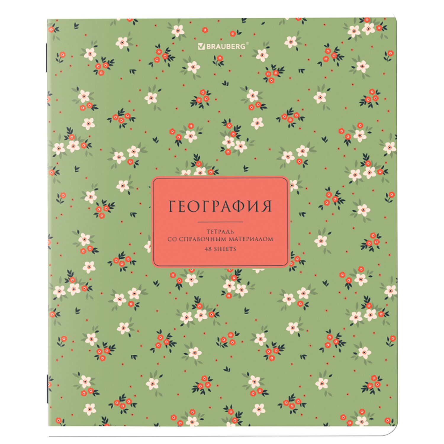 Тетрадь предметная BLOSSOM 48л, рельефный картон, ГЕОГРАФИЯ, клетка, подсказ, BRAUBERG, 405594