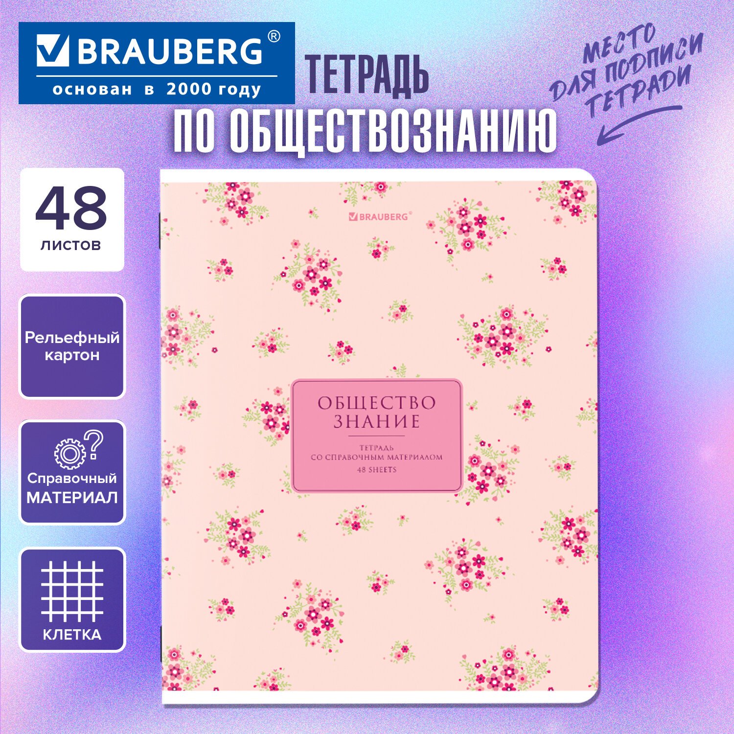 Тетрадь предметная BLOSSOM 48л, рельефный картон, ОБЩЕСТВО, клетка, подсказ, BRAUBERG, 405591