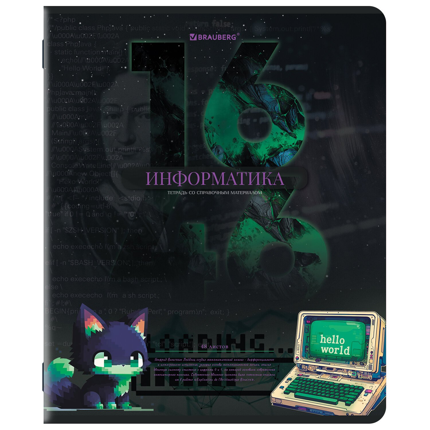Тетрадь предметная "КОТ-ЭНТУЗИАСТ" 48 л., TWIN-лак, ИНФОРМАТИКА, клетка, подсказ, BRAUBERG, 404562