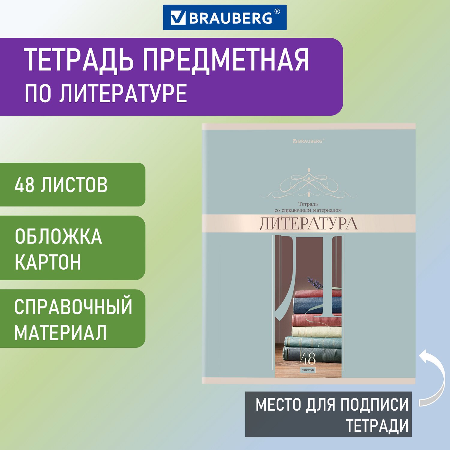 Тетрадь предметная "DELIGHT" 48 л., обложка картон, ЛИТЕРАТУРА, линия, BRAUBERG, 404576
