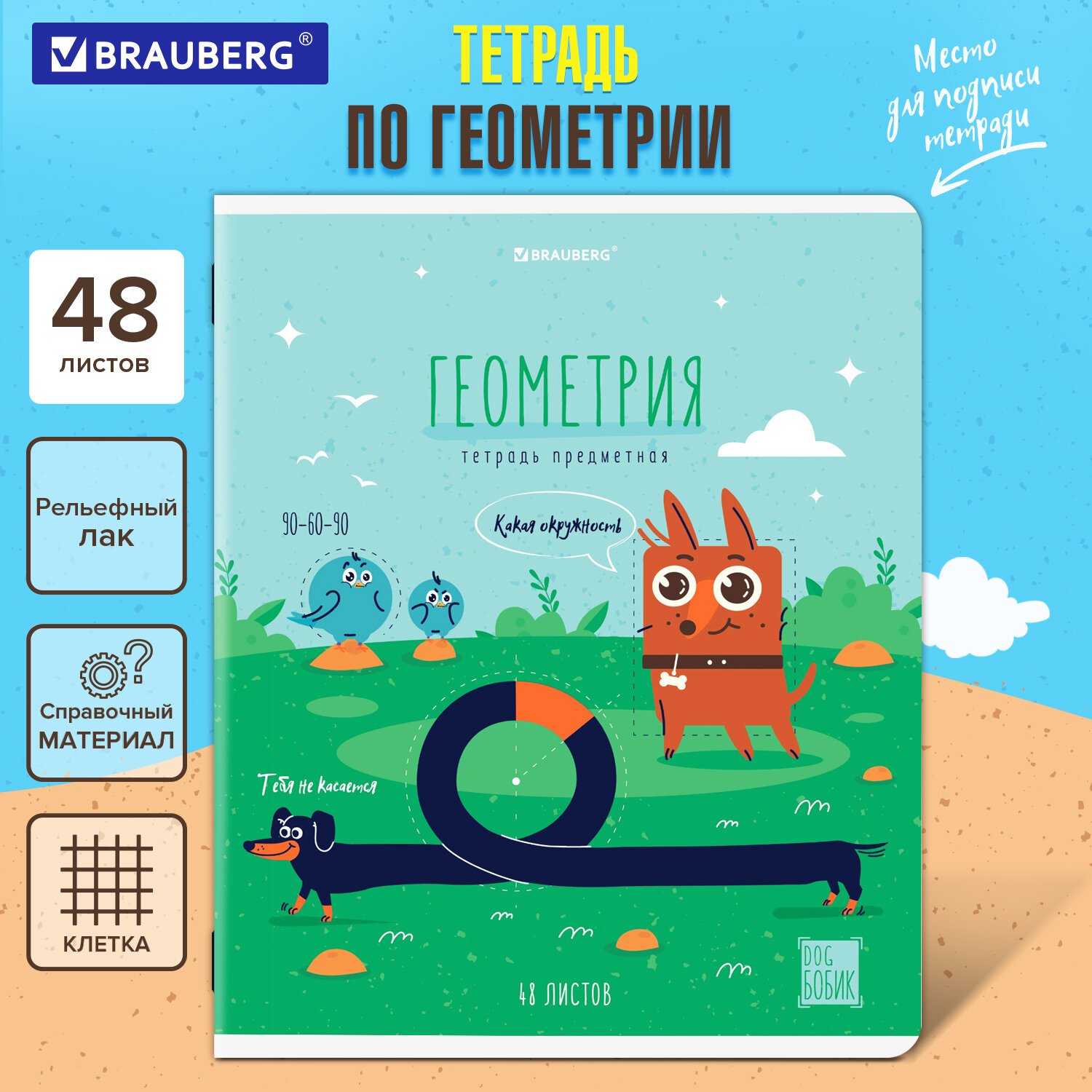 Тетрадь предметная DOG БОБИК 48 л., TWIN-лак, ГЕОМЕТРИЯ, клетка, подсказ, BRAUBERG, 404787