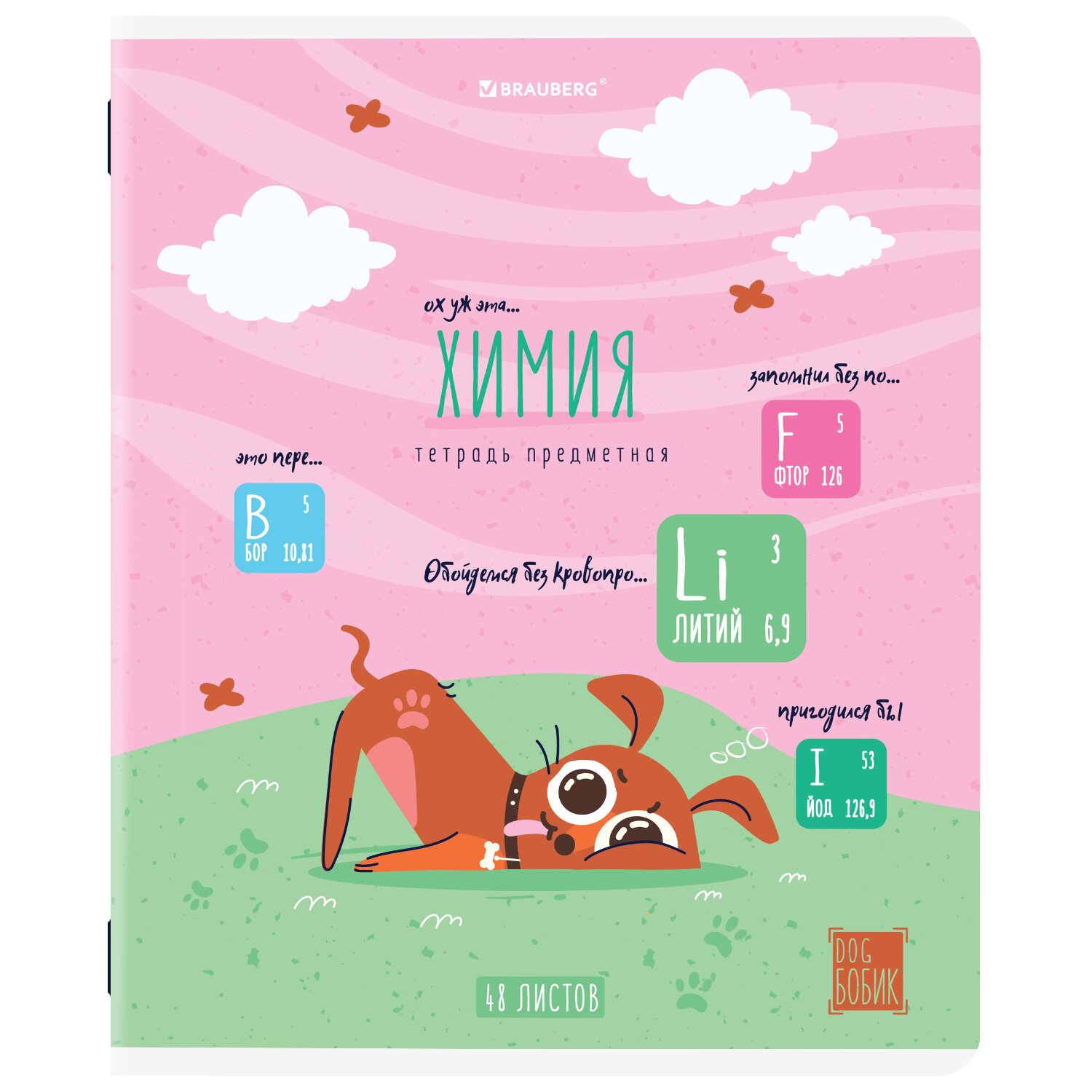 Тетрадь предметная DOG БОБИК 48 л., TWIN-лак, ХИМИЯ, клетка, подсказ, BRAUBERG, 404793