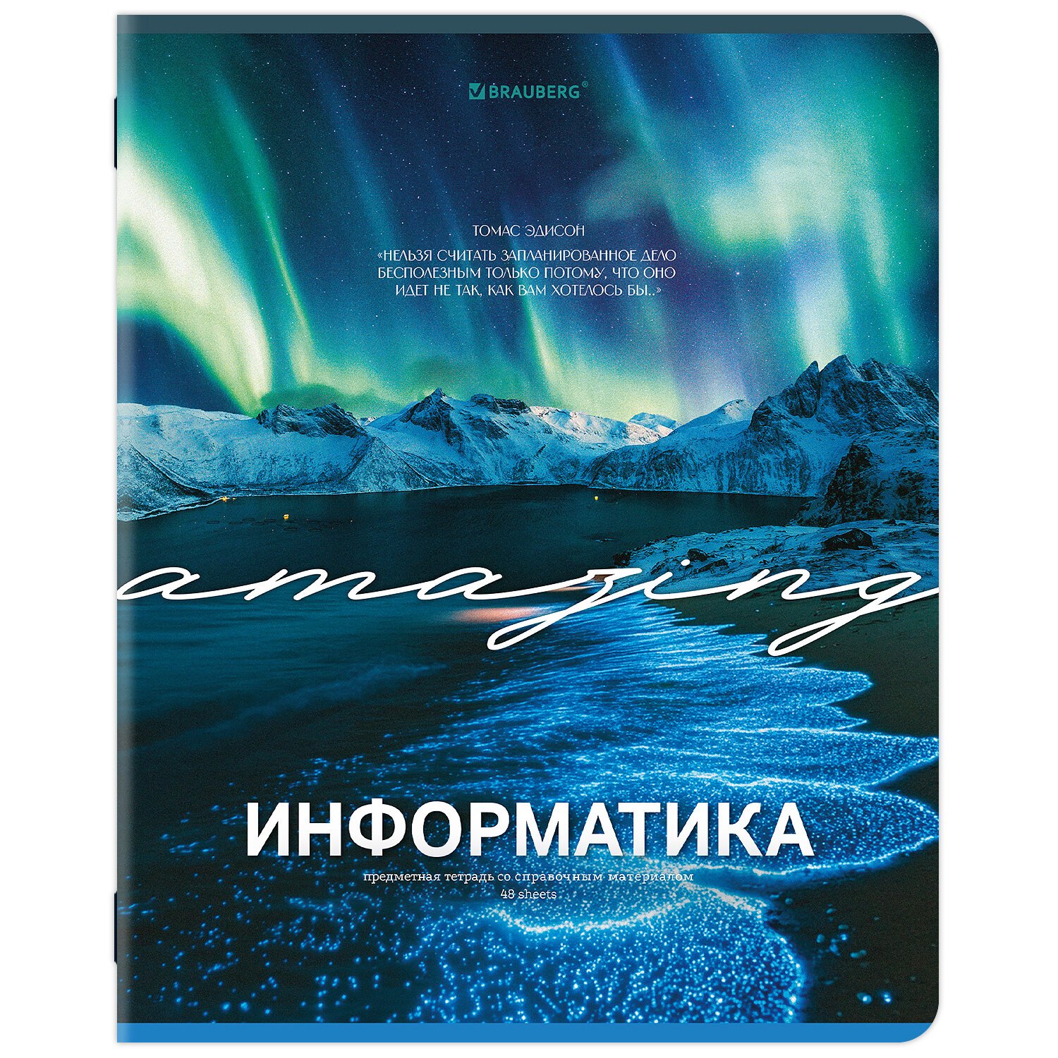 Тетрадь предметная BLOSSOM 48л, рельефный картон, ИНФОРМАТИКА, клетка, подсказ,BRAUBERG, 405596