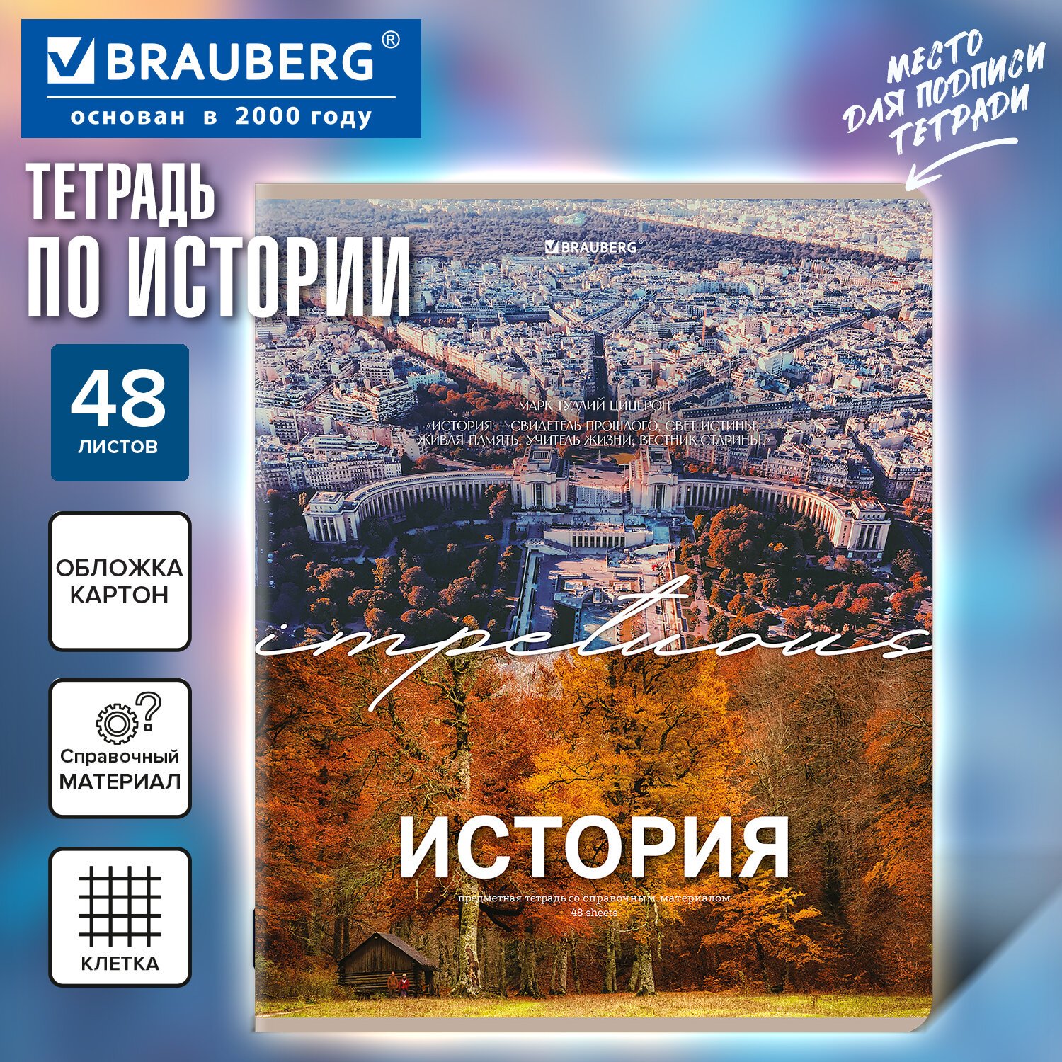 Тетрадь предметная КЛАССИКА ПРИРОДА 48 л., обложка картон, ИСТОРИЯ, клетка, подсказ, BRAUBERG, 405089