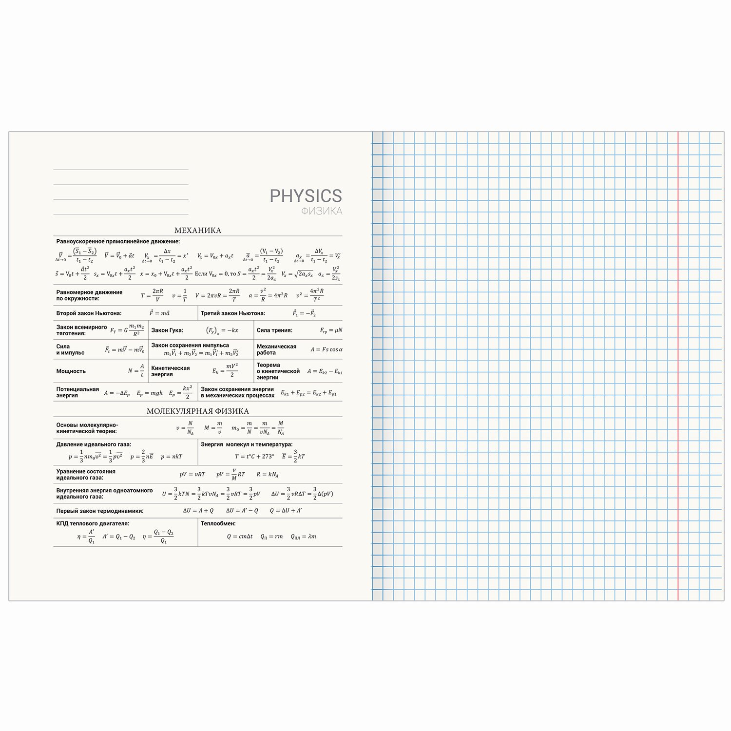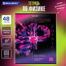 Тетрадь предметная "КЛАССИКА SCIENCE" 48 л., обложка картон, ФИЗИКА, клетка, подсказ, BRAUBERG, 404816