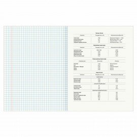 Тетрадь 48 листов, формат А5 (165х202 мм). Изготовлена из высококачественной офсетной бумаги плотностью 60 г/м2, 100% белизны. Листы соединены скобами. Линовка блока - в клетку, поля красные. Обложка выполнена из мелованного картона плотностью 190 г/м2. В справочном материале собраны основные подсказки по школьному предмету для учащихся.