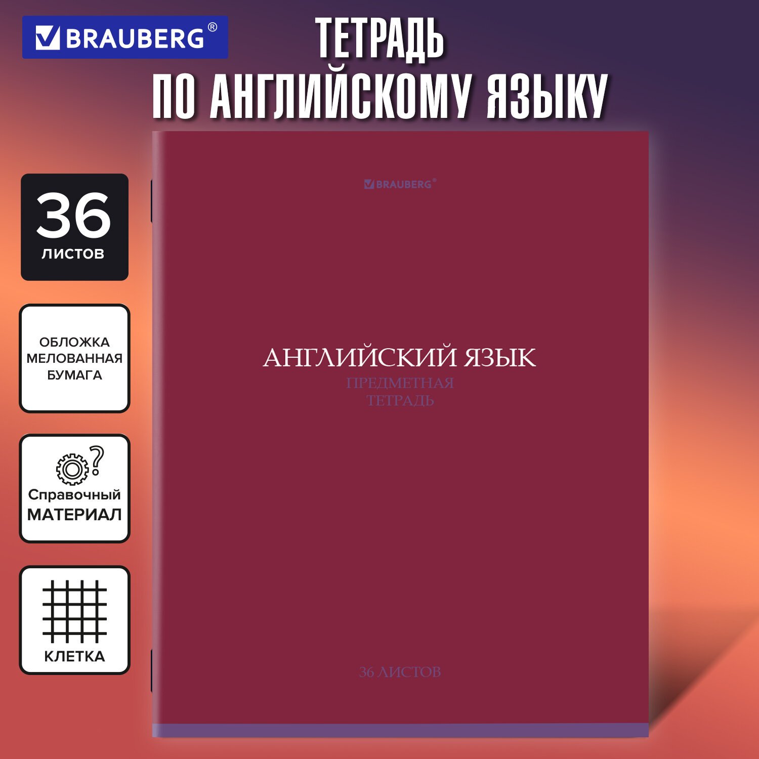 Тетрадь предметная КОЛОР 36л, обложка мелованная бумага, АНГЛИЙСКИЙ ЯЗЫК, клетка, BRAUBERG, 405071