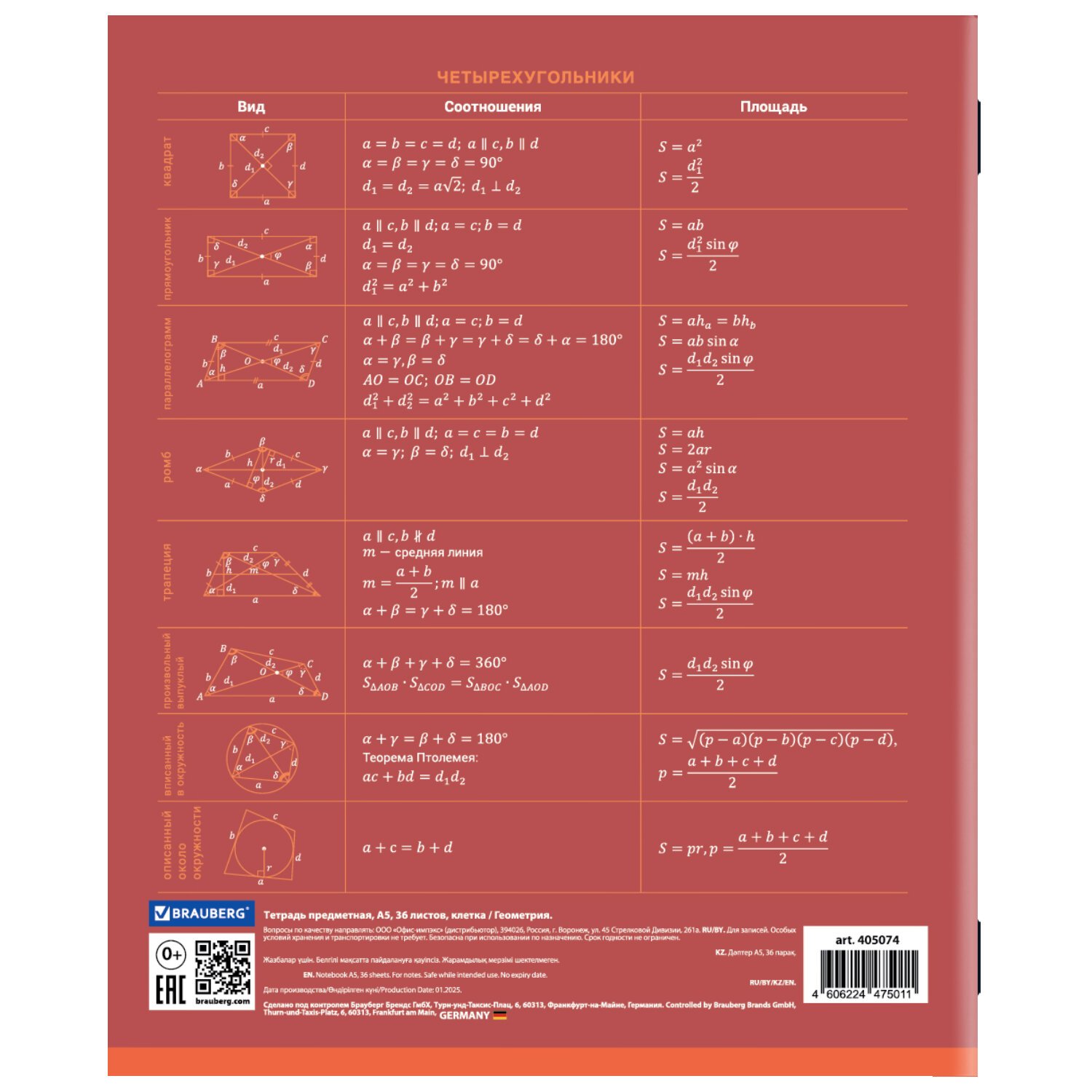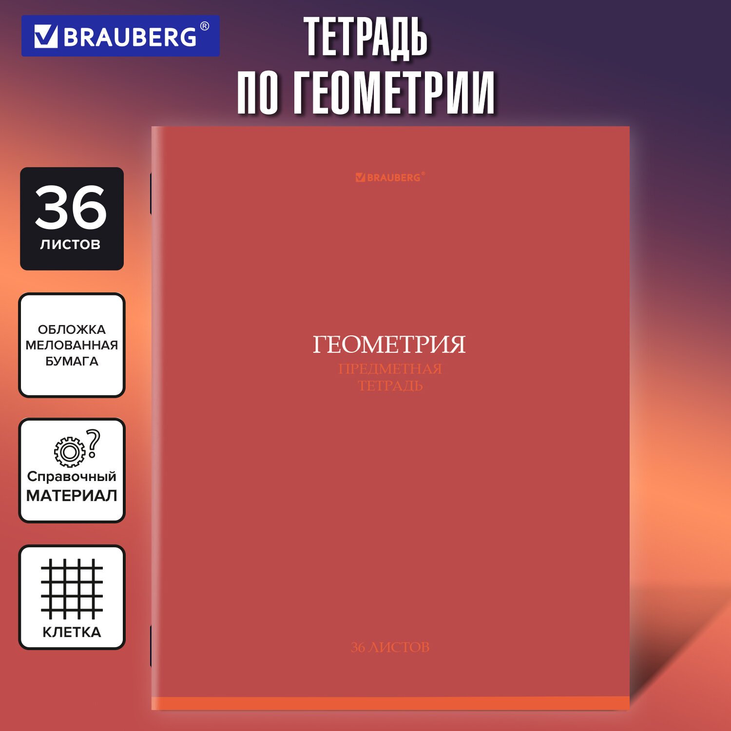 Тетрадь предметная КОЛОР 36л, обложка мелованная бумага, ГЕОМЕТРИЯ, клетка, BRAUBERG, 405074