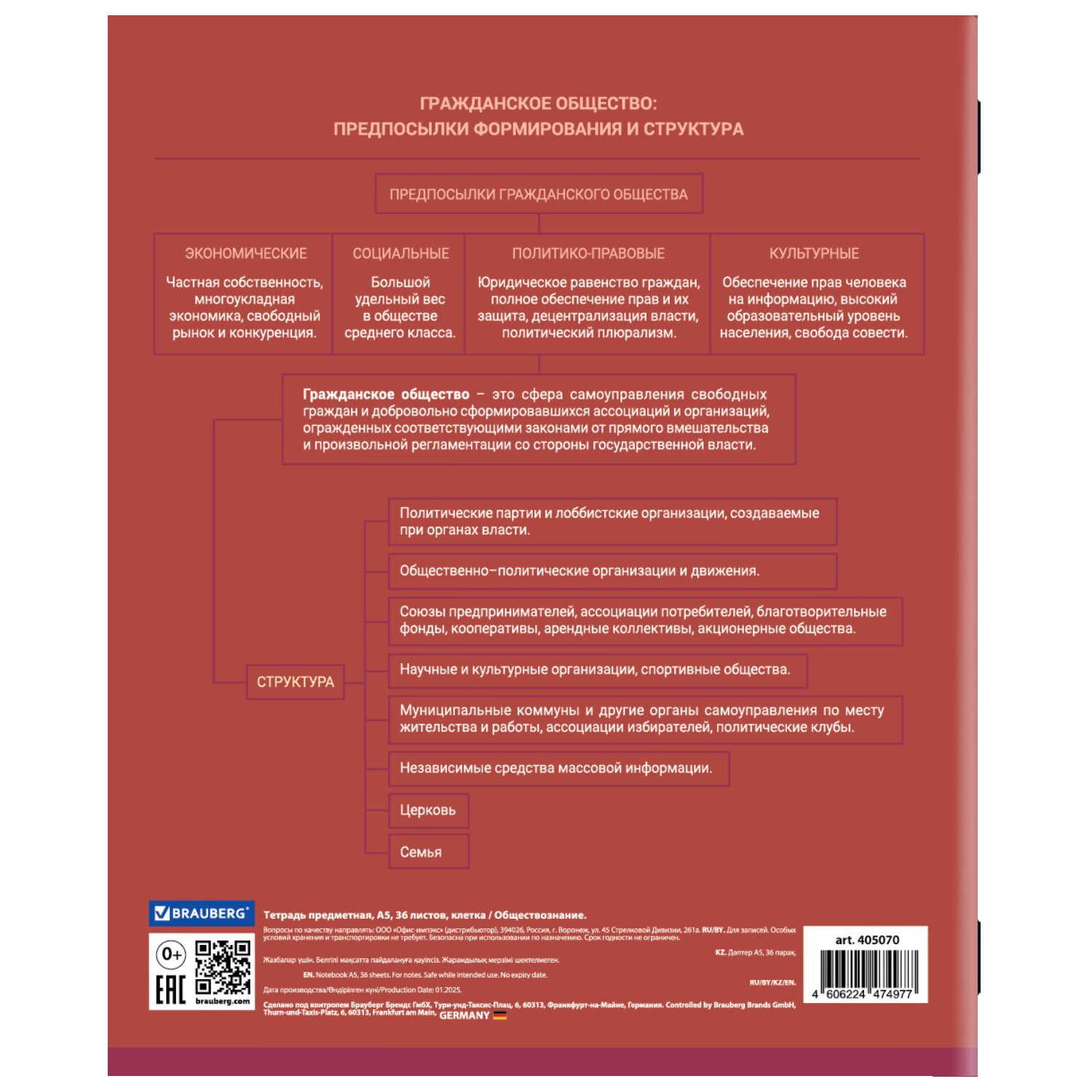 Тетрадь предметная КОЛОР 36л, обложка мелованная бумага, ОБЩЕСТВОЗНАНИЕ, клетка, BRAUBERG, 405070