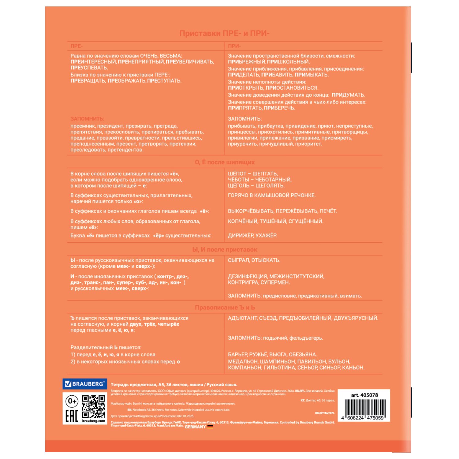 Тетрадь предметная КОЛОР 36л, обложка мелованная бумага, РУССКИЙ ЯЗЫК, линия, BRAUBERG, 405078