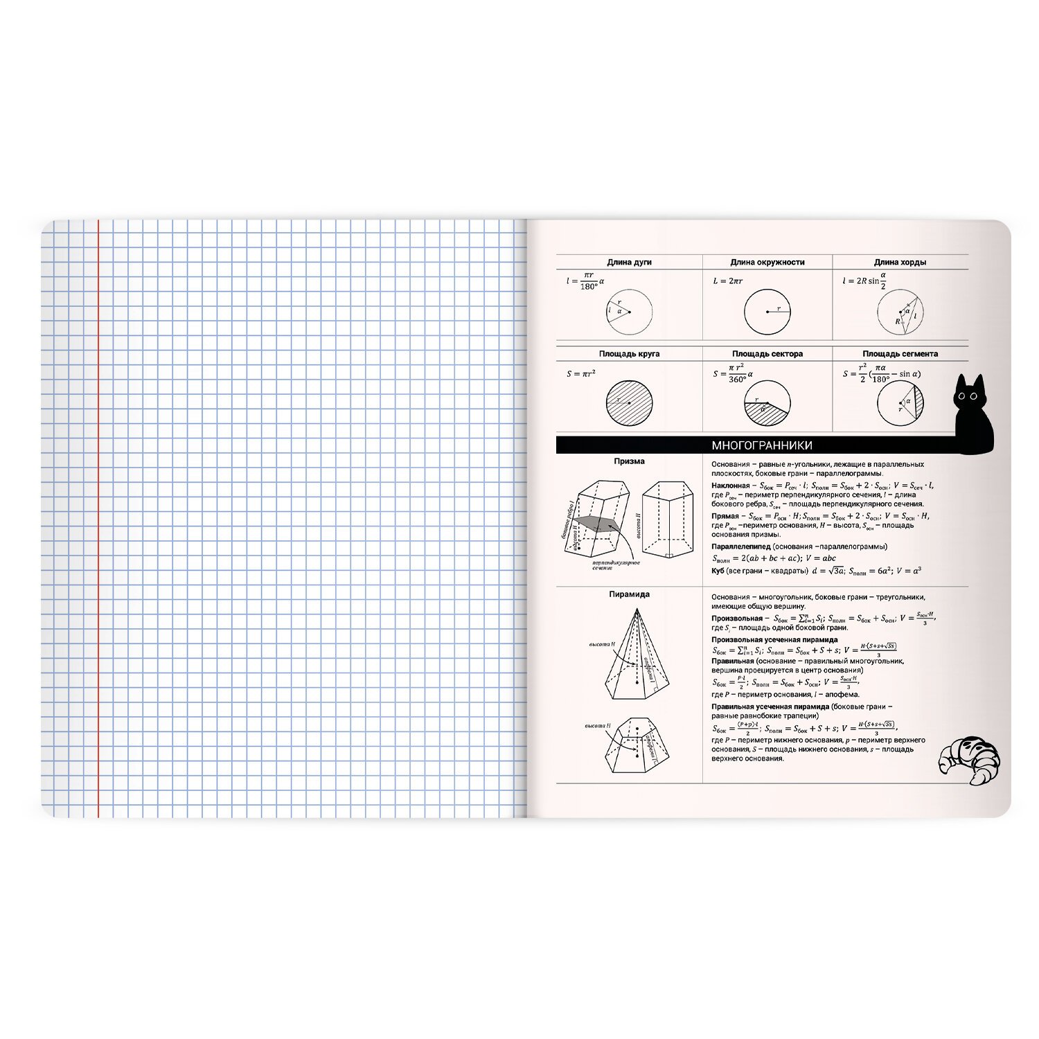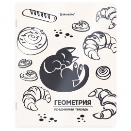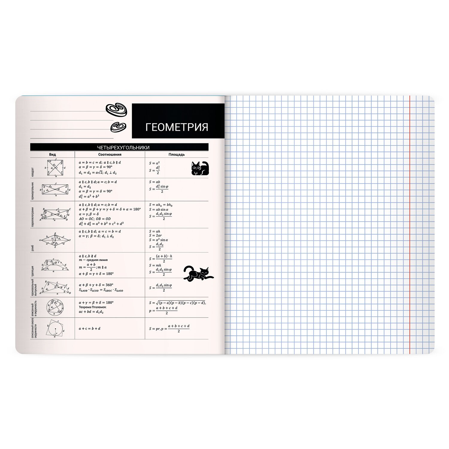 Тетрадь предметная КОТ-НЕПОСЕДА 48л, пластиковая обложка, ГЕОМЕТРИЯ, клетка, подсказ, BRAUBERG, 405532