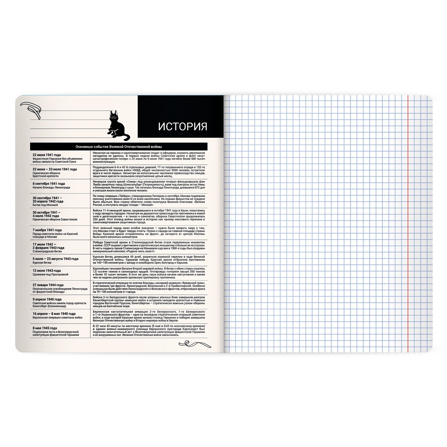 Тетрадь предметная КОТ-НЕПОСЕДА 48л, пластиковая обложка, ИСТОРИЯ, клетка, подсказ, BRAUBERG, 405534