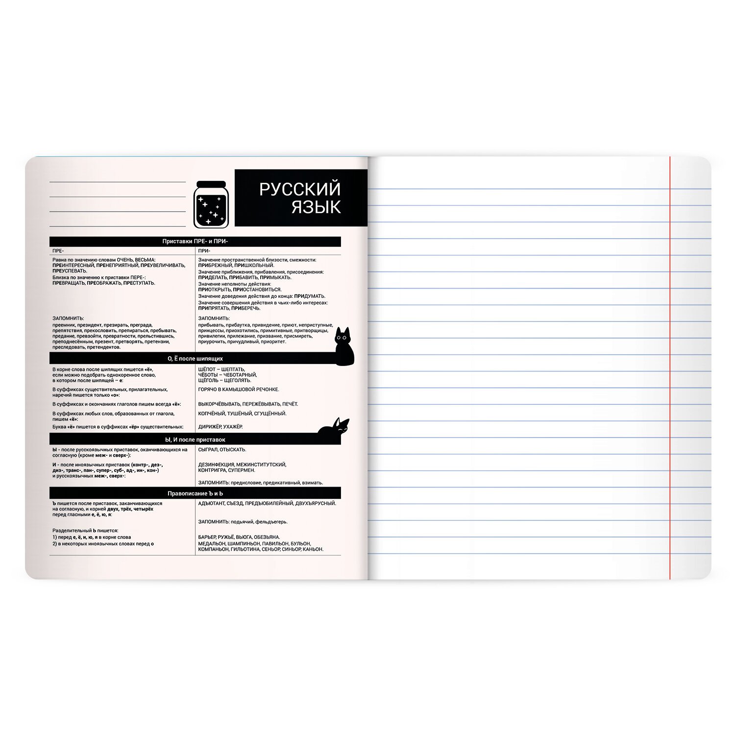 Тетрадь предметная КОТ-НЕПОСЕДА 48л, пластиковая обложка, РУССКИЙ ЯЗЫК, линия, подсказ, BRAUBERG, 405536