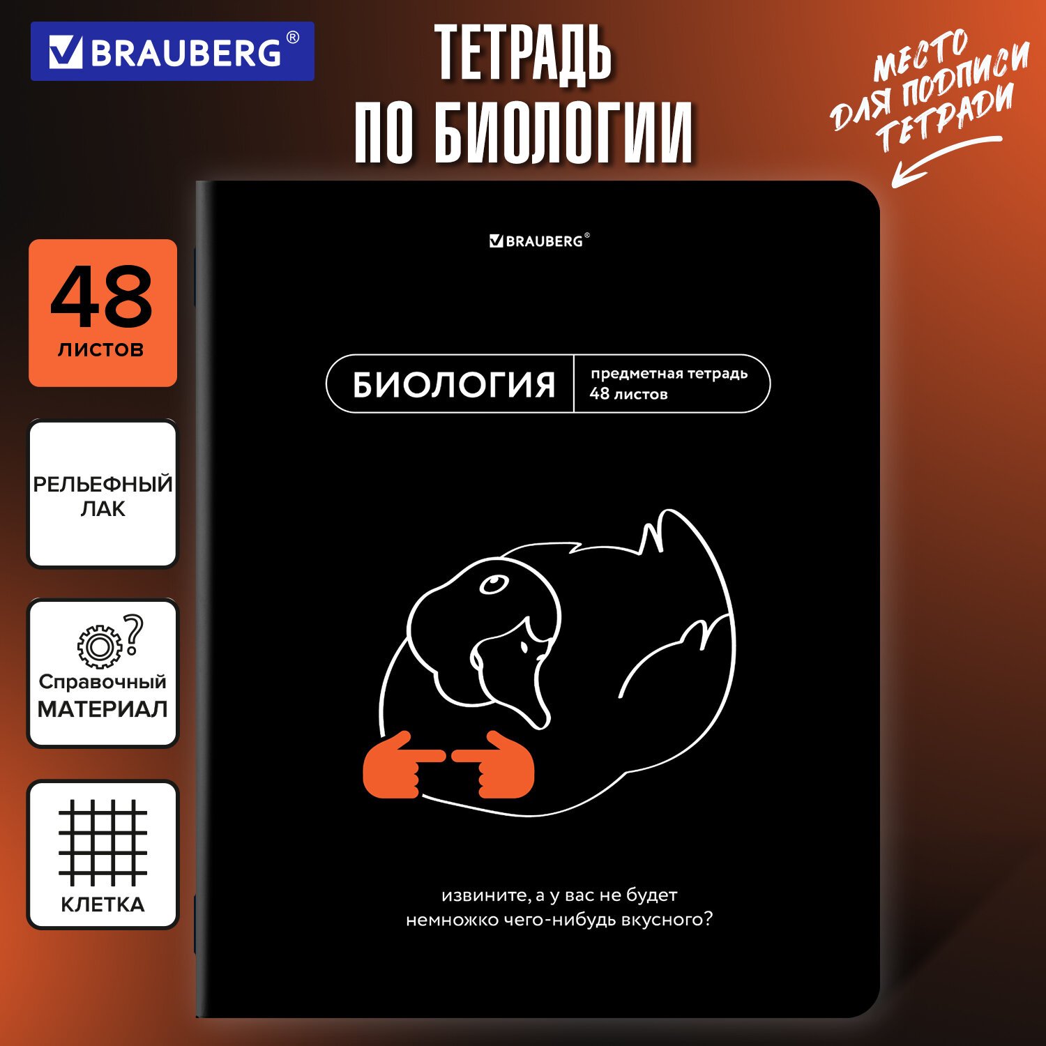 Тетрадь предметная "КОТ-ЭНТУЗИАСТ" 48 л., TWIN-лак, БИОЛОГИЯ, клетка, подсказ, BRAUBERG, 404559