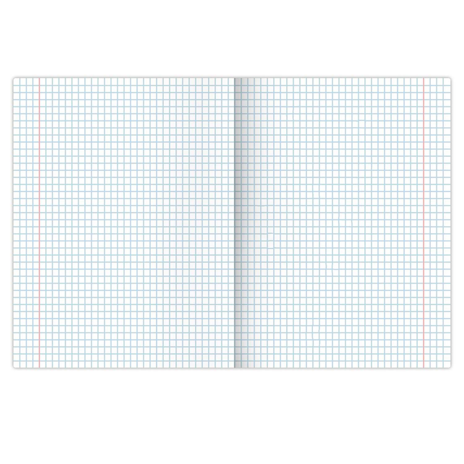 Листы соединены скобами. Линовка блока - клетка, красные поля. Обложка выполнена из мелованной бумаги плотностью 170 г/м2. Подсказ по предмету отсутствует.