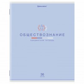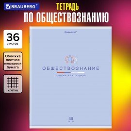 Тетрадь предметная КОЛОР 36л, обложка мелованная бумага, ОБЩЕСТВОЗНАНИЕ, клетка, BRAUBERG, 405070
