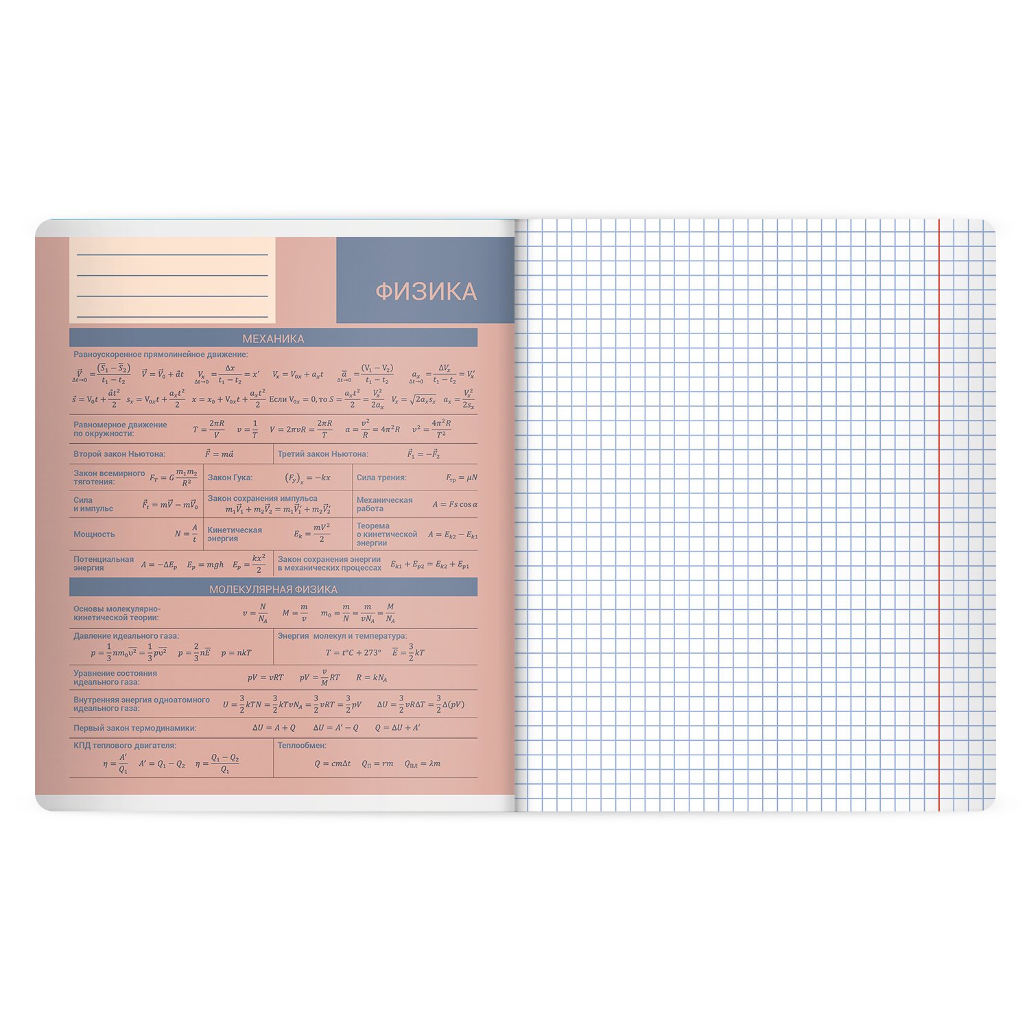 Тетрадь по физике формата А5 с двойной обложкой: внешняя выполнена из высококачественного износостойкого прозрачного пластика, внутренняя – из качественной офсетной бумаги. Преимущество таких тетрадей заключается в том, что для сохранения внешнего вида не нужно покупать дополнительную обложку. На подкладных листах содержится справочный материал по предмету. Внутренний блок плотностью 60 г/м2 из офсетной бумаги содержит 48 листов в клетку с полями. Белизна блока - 100%. Скрепка надежно соединяет листы между собой.