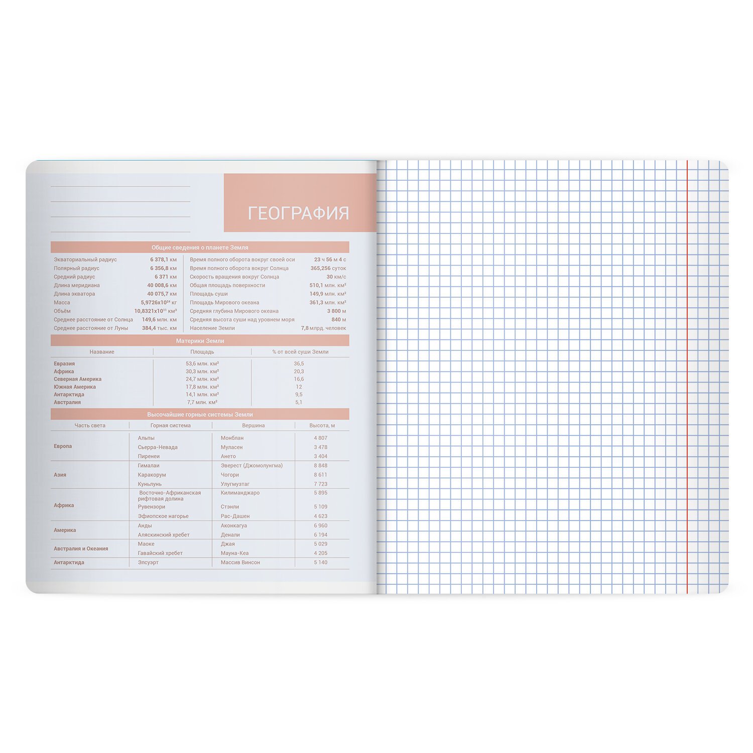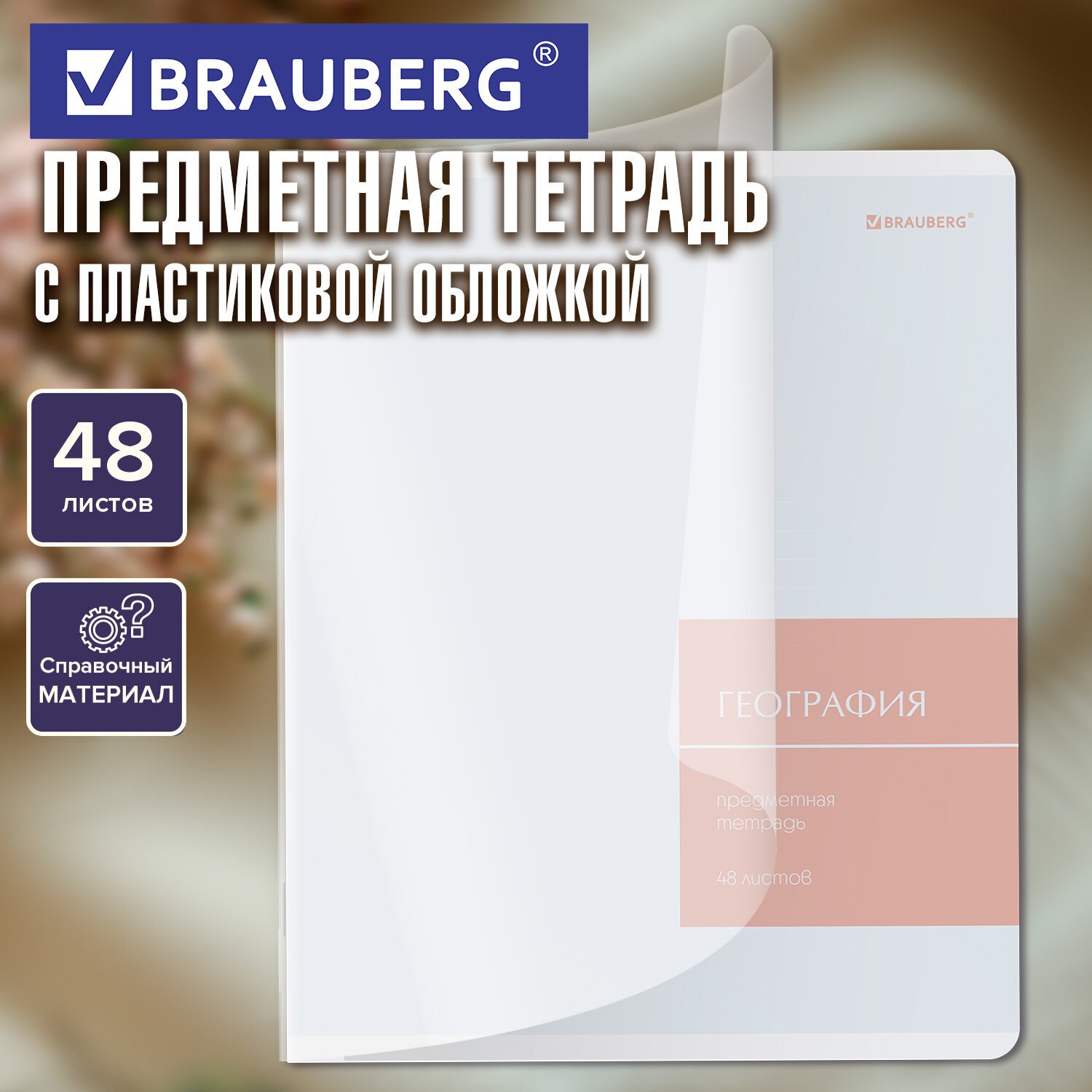 Тетрадь предметная MonoPastel 48л, пластиковая обложка, ГЕОГРАФИЯ, клетка, подсказ, BRAUBERG, 405505