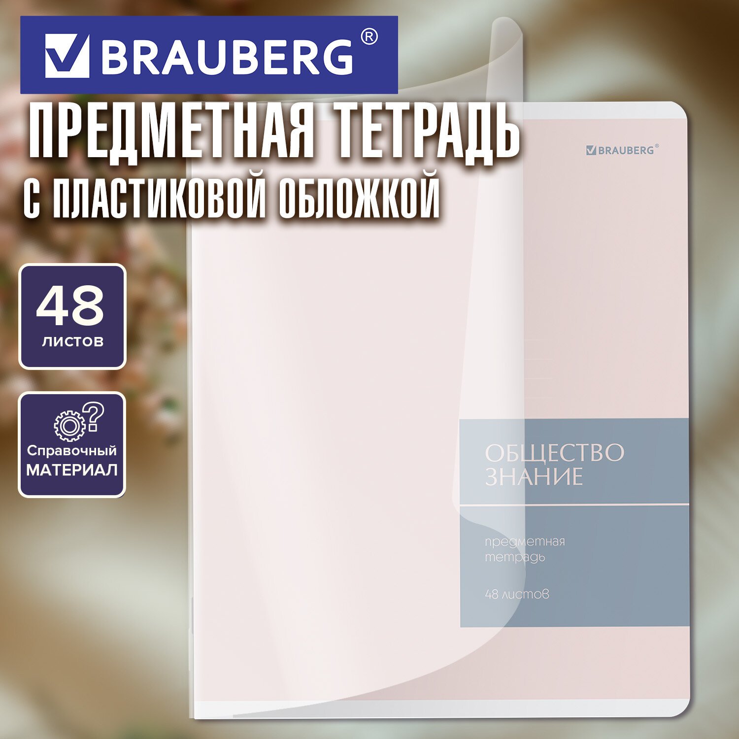 Тетрадь предметная MonoPastel 48л, пластиковая обложка, ОБЩЕСТВОЗНАНИЕ, клетка, подсказ, BRAUBERG, 405502