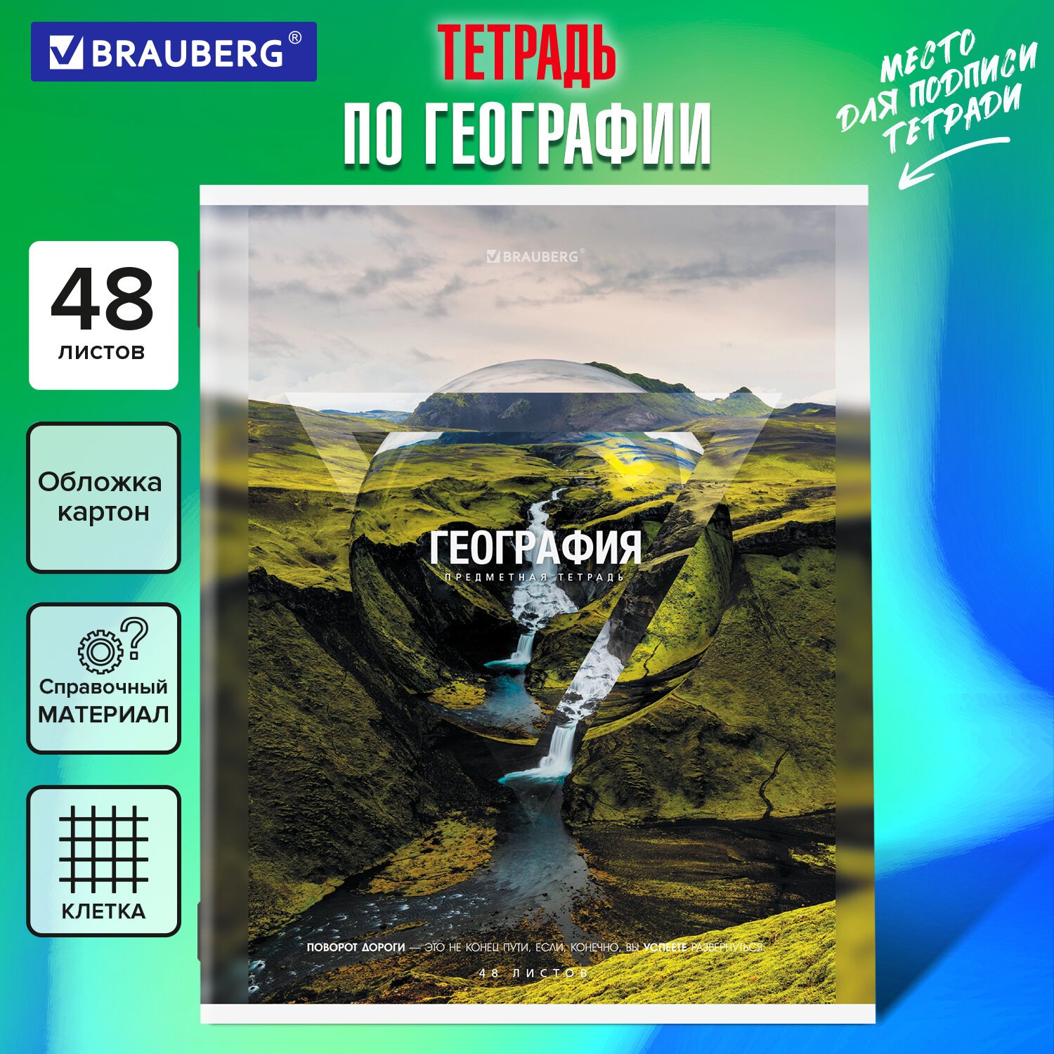 Тетрадь предметная "ПРИРОДА" 48 л., обложка картон, ГЕОГРАФИЯ, клетка, подсказ, BRAUBERG, 404774
