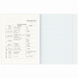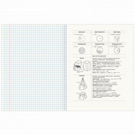 Тетрадь 48 листов, формат А5 (165х202 мм). Изготовлена из высококачественной офсетной бумаги 100% белизны, плотностью 60 г/м2. Листы соединены скобами. Линовка блока - в клетку, поля красные. Обложка выполнена из мелованного картона плотностью 190 г/м2. В справочном материале собраны основные подсказки по школьному предмету для учащихся.