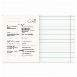 Тетрадь по русскому языку формата А5 (165х202 мм) содержит 48 листов, изготовленных из высококачественной офсетной бумаги 100% белизны, плотностью 60 г/м2. Листы соединены скобами. Линовка блока - в линию, красные поля.