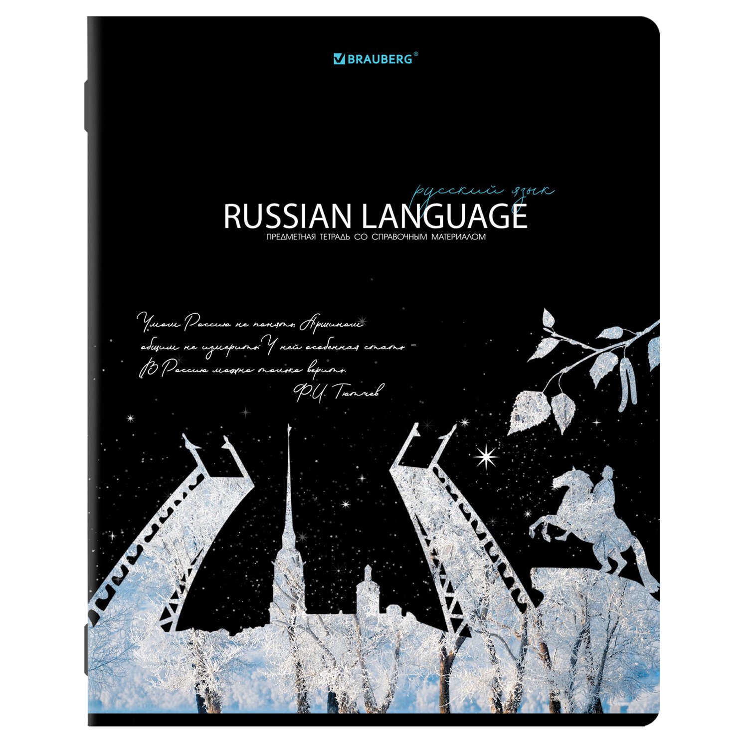 Тетрадь предметная CLASSIC 48 л., рельефный картон, матовая ламинация, РУССКИЙ ЯЗЫК, линия, подсказ, BRAUBERG, 405144