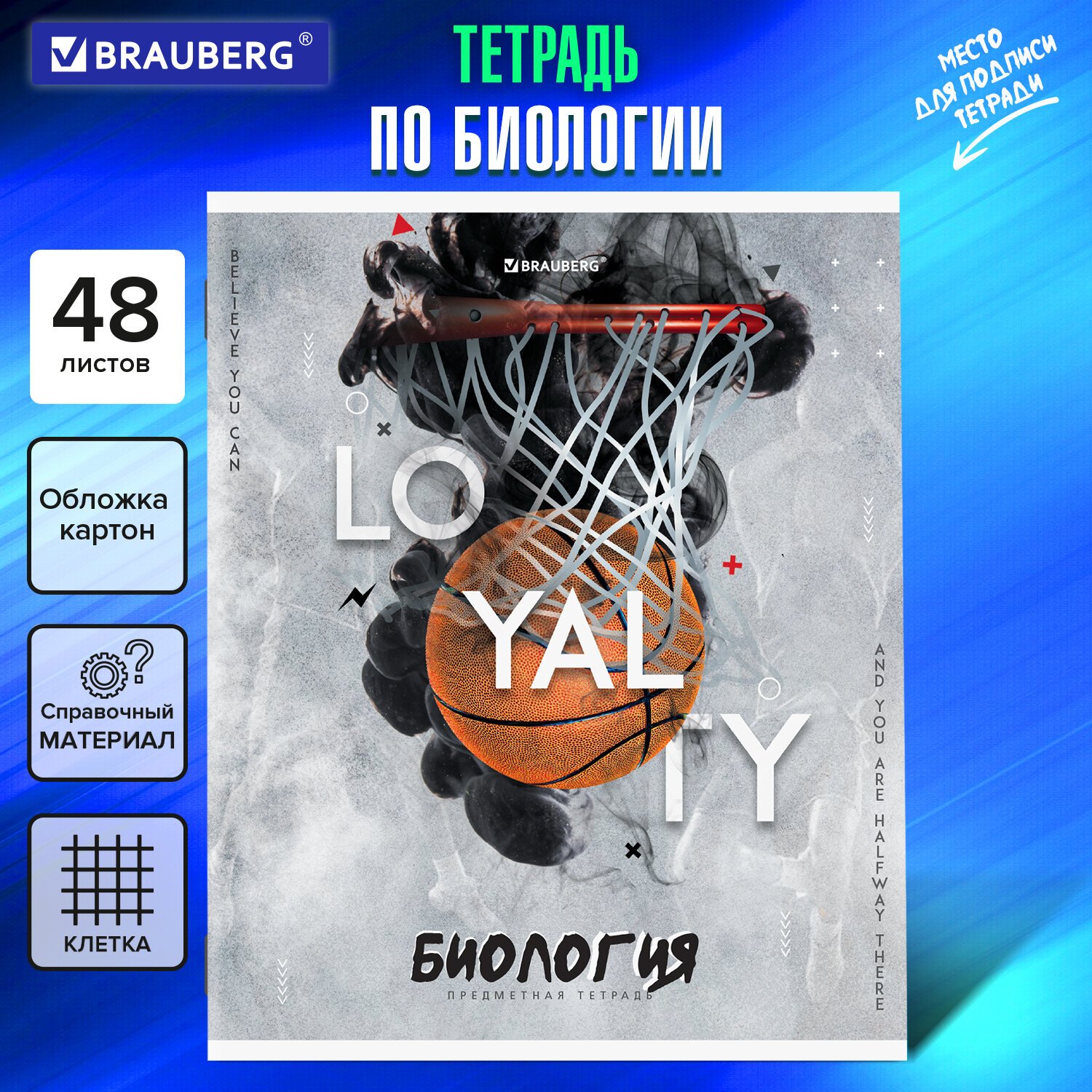 Тетрадь предметная "SPORT CLUB" 48 л., обложка картон, БИОЛОГИЯ, клетка, подсказ, BRAUBERG, 404797