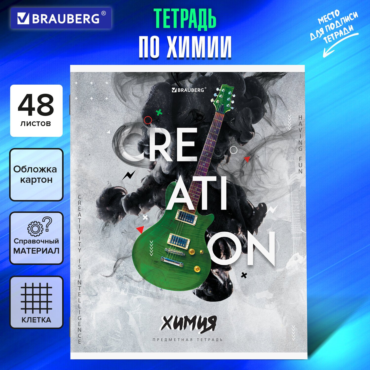Тетрадь предметная CREATIVE 48 л., обложка картон, ХИМИЯ, клетка, подсказ, BRAUBERG, 405120
