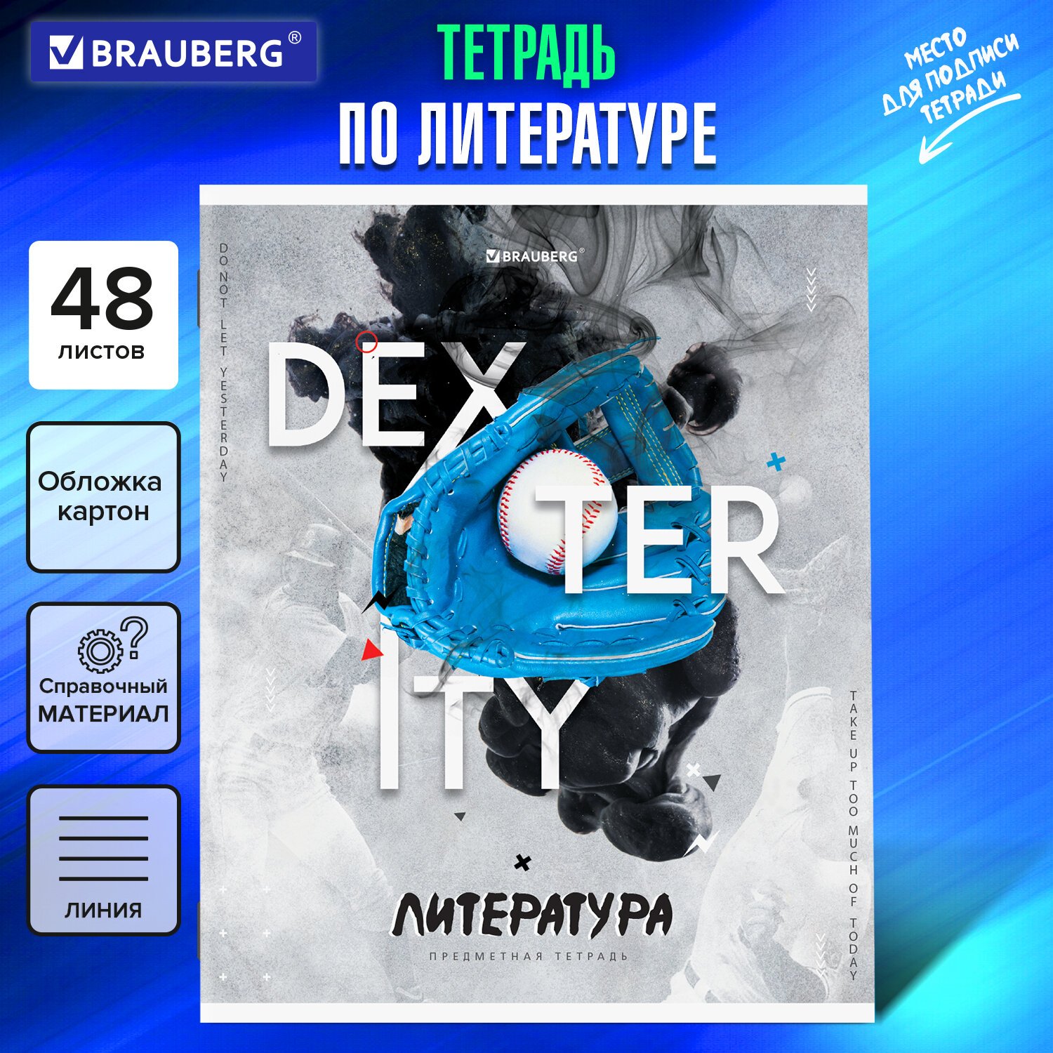 Тетрадь предметная "SPORT CLUB" 48 л., обложка картон, ЛИТЕРАТУРА, линия, подсказ, BRAUBERG, 404802