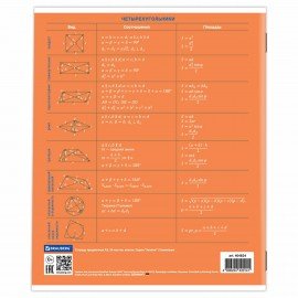 Тетрадь по геометрии формата А5 (165х202 мм) содержит 36 листов, изготовленных из высококачественной офсетной бумаги плотностью 60 г/м2, 100% белизны. Листы соединены скобами. Линовка блока - клетка, красные поля. Обложка выполнена из мелованной бумаги плотностью 170 г/м2. На обратной стороне обложки расположены основные подсказки по школьному предмету.