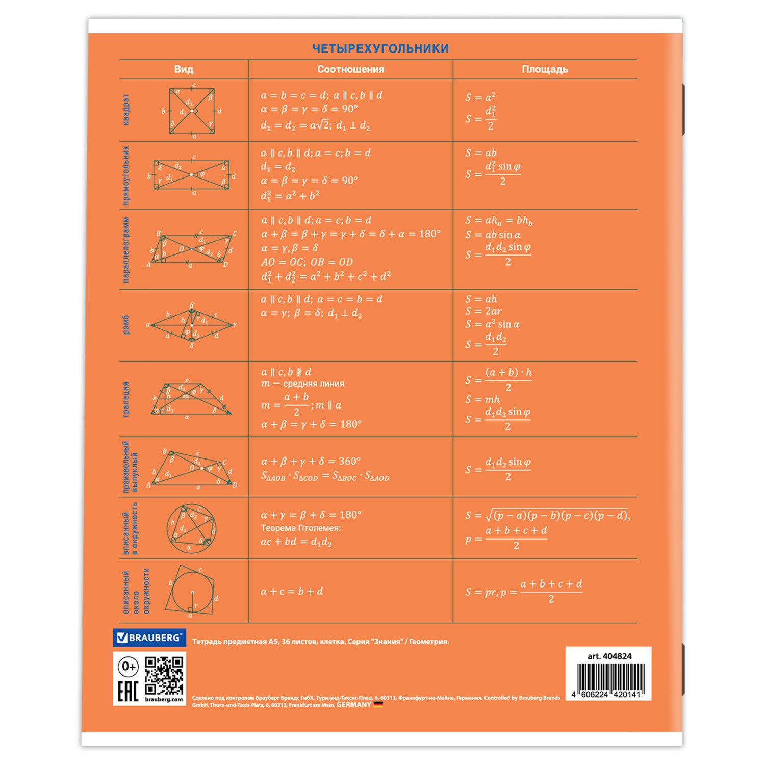 Тетрадь предметная "ЗНАНИЯ" 36 л., обложка мелованная бумага, ГЕОМЕТРИЯ, клетка, подсказ, BRAUBERG, 404824