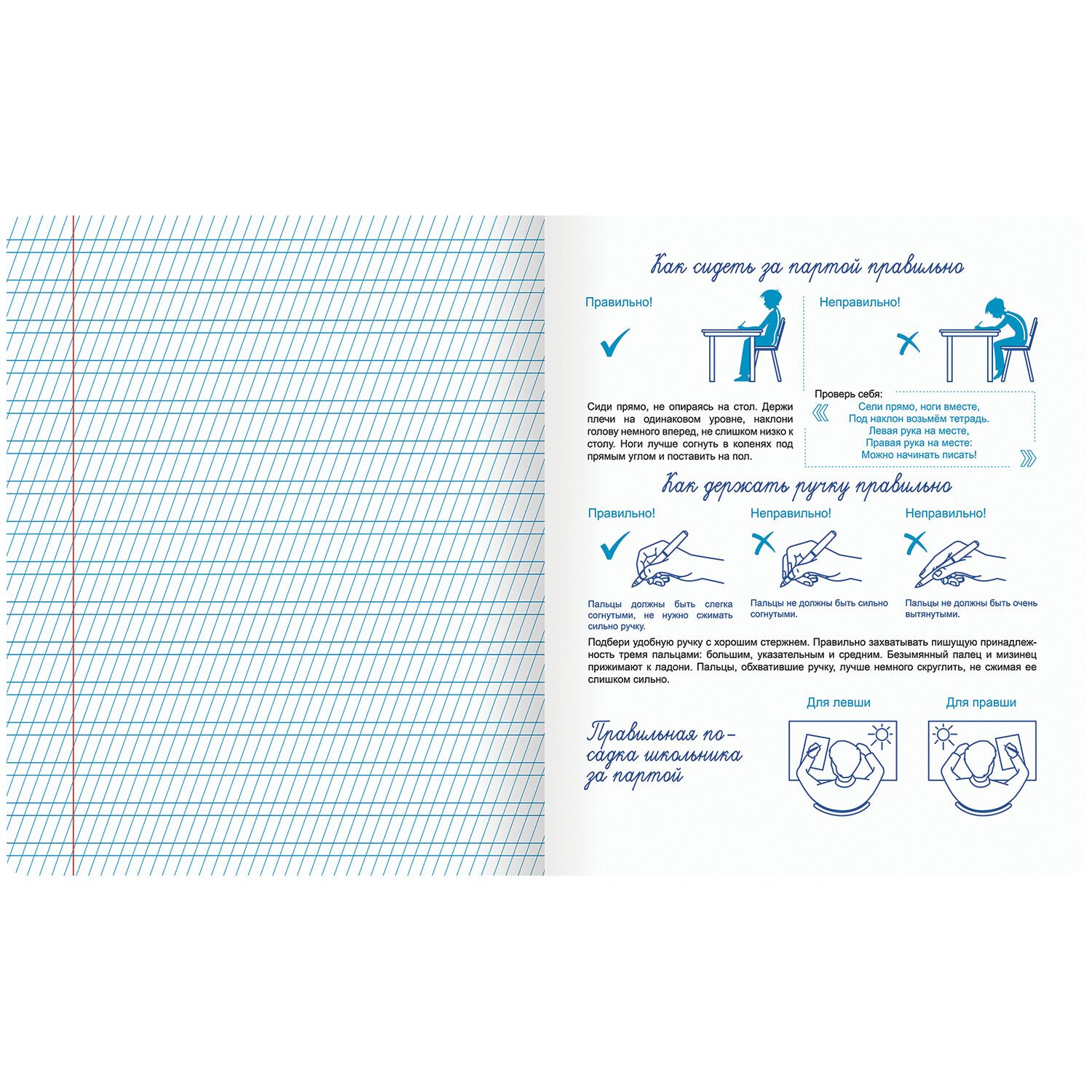 Справочный материал внутри тетради поможет сформировать наклон при письме и постановку почерка.