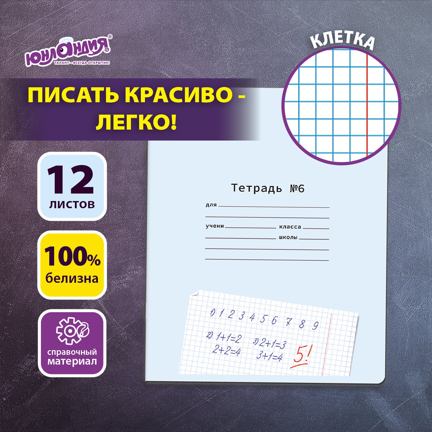 Тетрадь УЧУСЬ ПИСАТЬ № 6 12 л. клетка, со справочным материалом, обложка картон, ЮНЛАНДИЯ, 404849