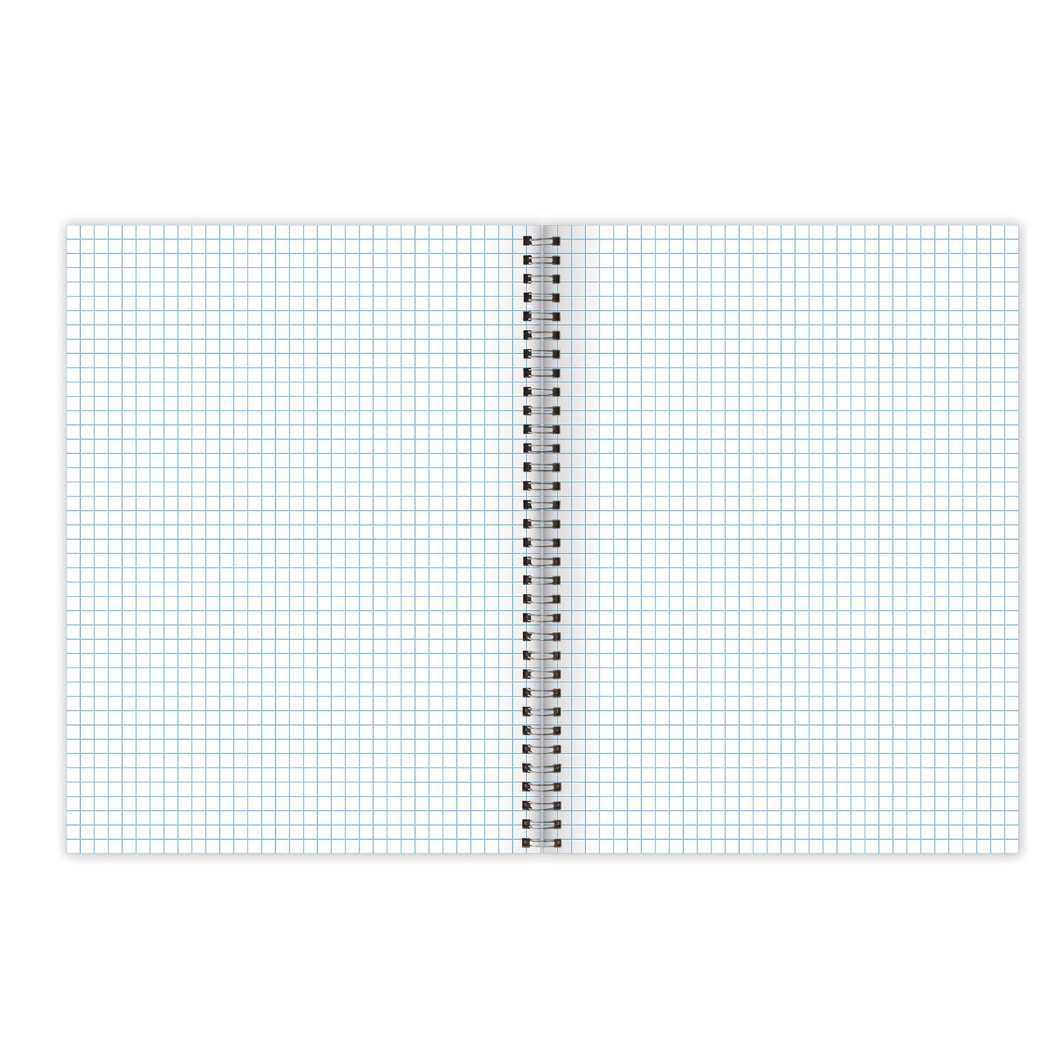 Пластиковая обложка надежно защитит внутренний блок от повреждений. Внутренний блок содержит 80 листов офсетной бумаги плотностью 65 г/м2 и белизной 100%. Линовка блока - в клетку без полей. Листы соединены евроспиралью. Формат В5 (175х248 мм).